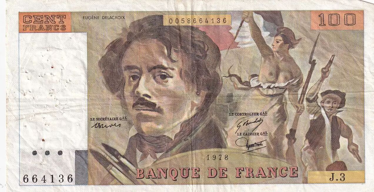 Banknote France 100 Francs Delacroix - 1978 - Serial J.3 - Fay.68.03