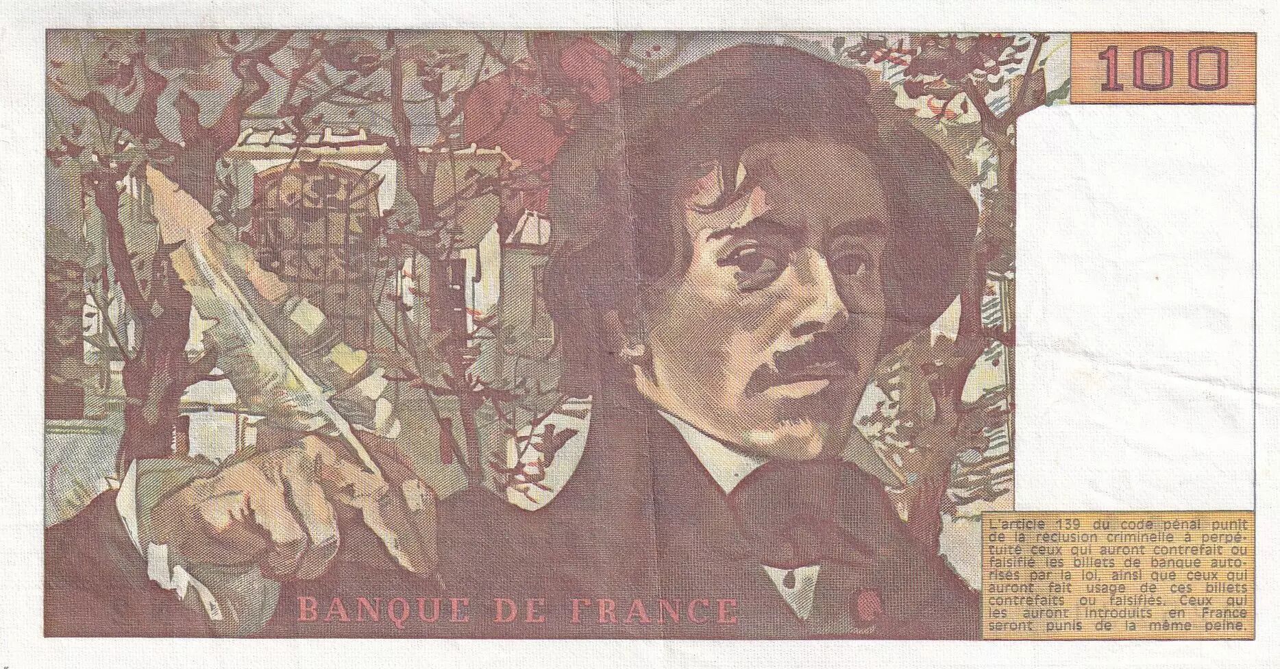 Banknote France 100 Francs - Delacroix - 1978 - Serial N.2 - P.154