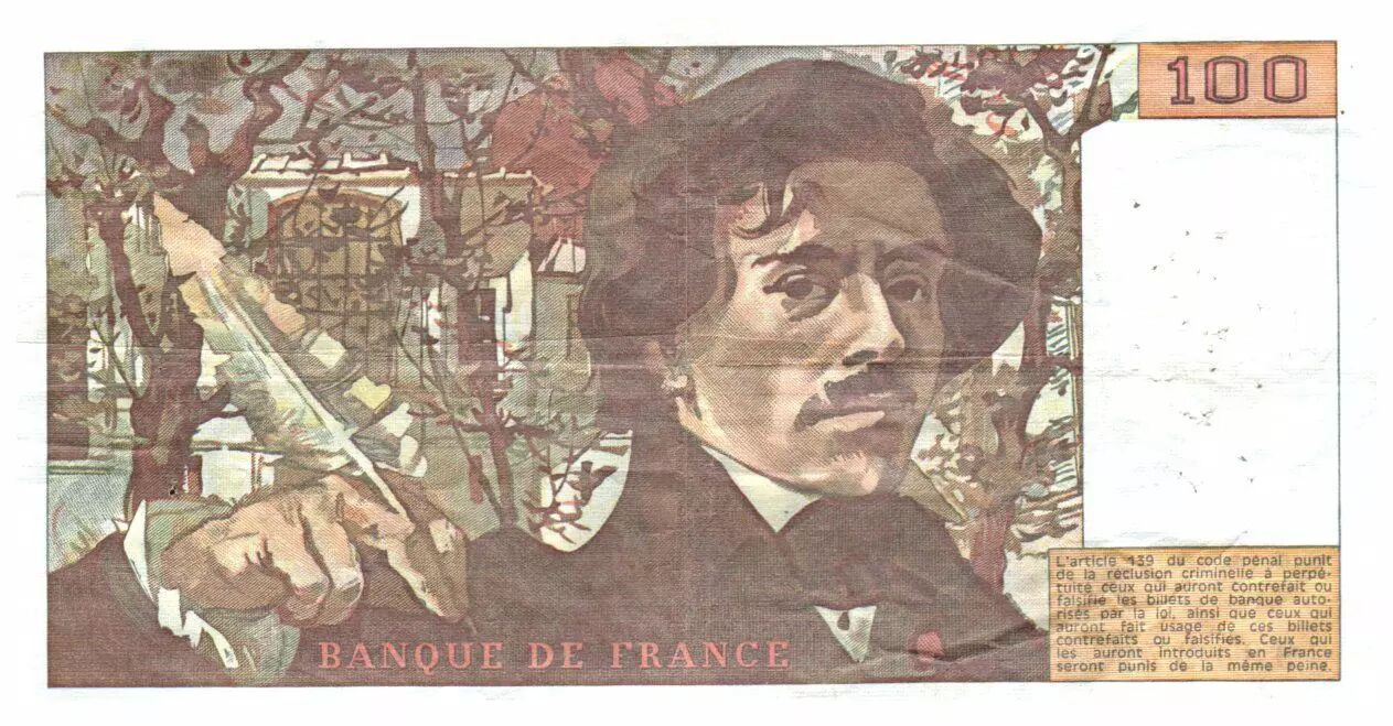 Banknote France 100 Francs Delacroix - 1978 Serial Q.9 - Large watermark - VF