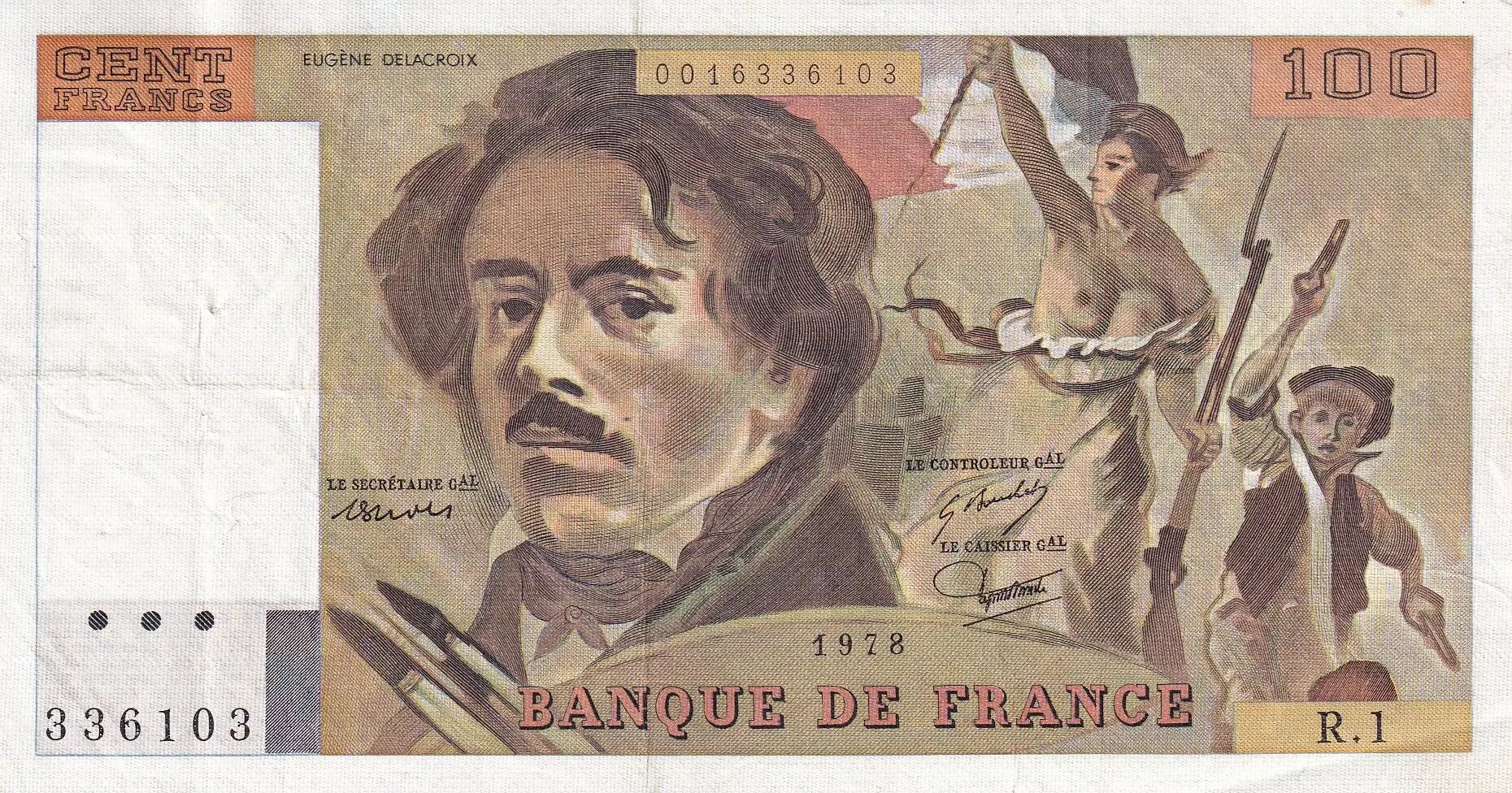 Banknote France 100 Francs - Delacroix - 1978 - Serial R.1 - P.154