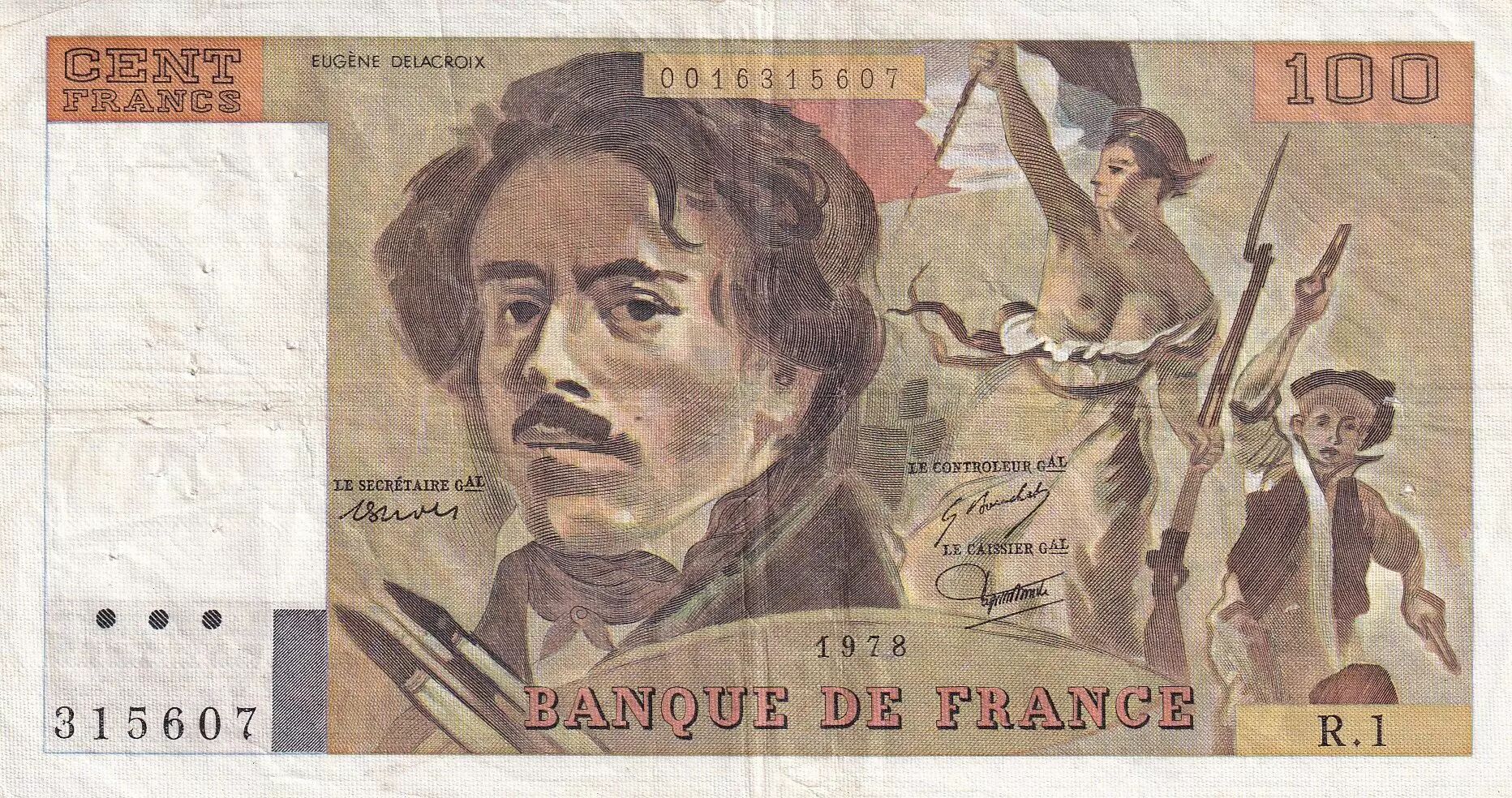 Banknote France 100 Francs - Delacroix - 1978 - Serial R.1 - P.154