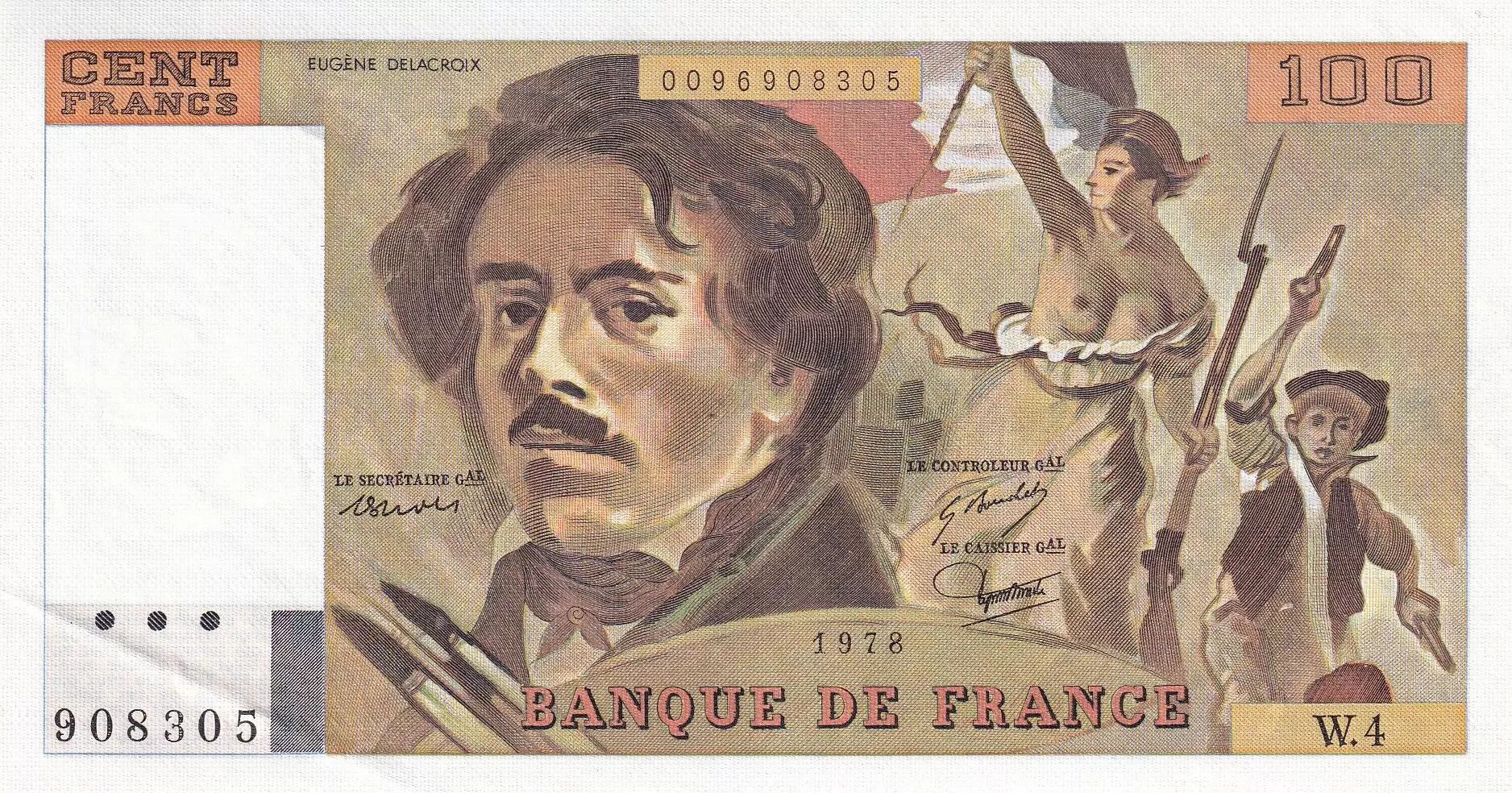Banknote France 100 Francs - Delacroix - 1978 - Serial W.4 - P.154