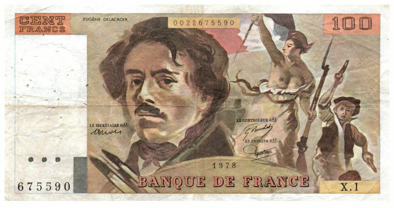 Banknote France 100 Francs Delacroix - 1978 Serial X.1 - F+