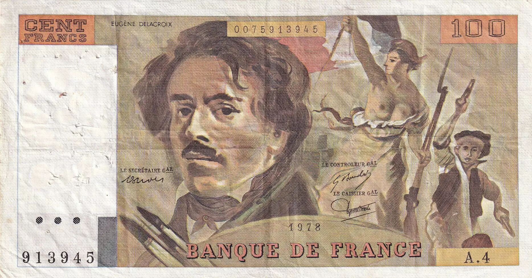Billet France 100 Francs - Delacroix - 1978 - Série A.4 - F.69.01c