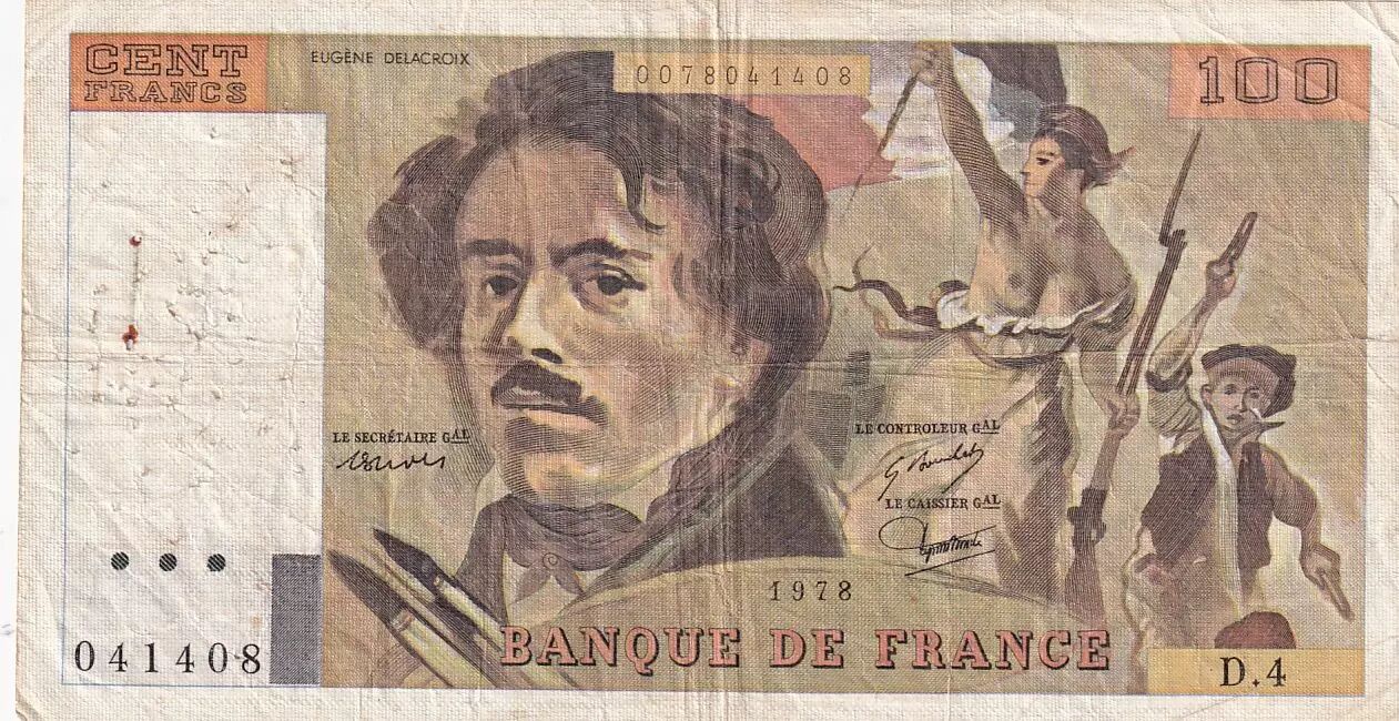 Billet France 100 Francs Delacroix - 1978 - Série D.4 - Fay.68.04