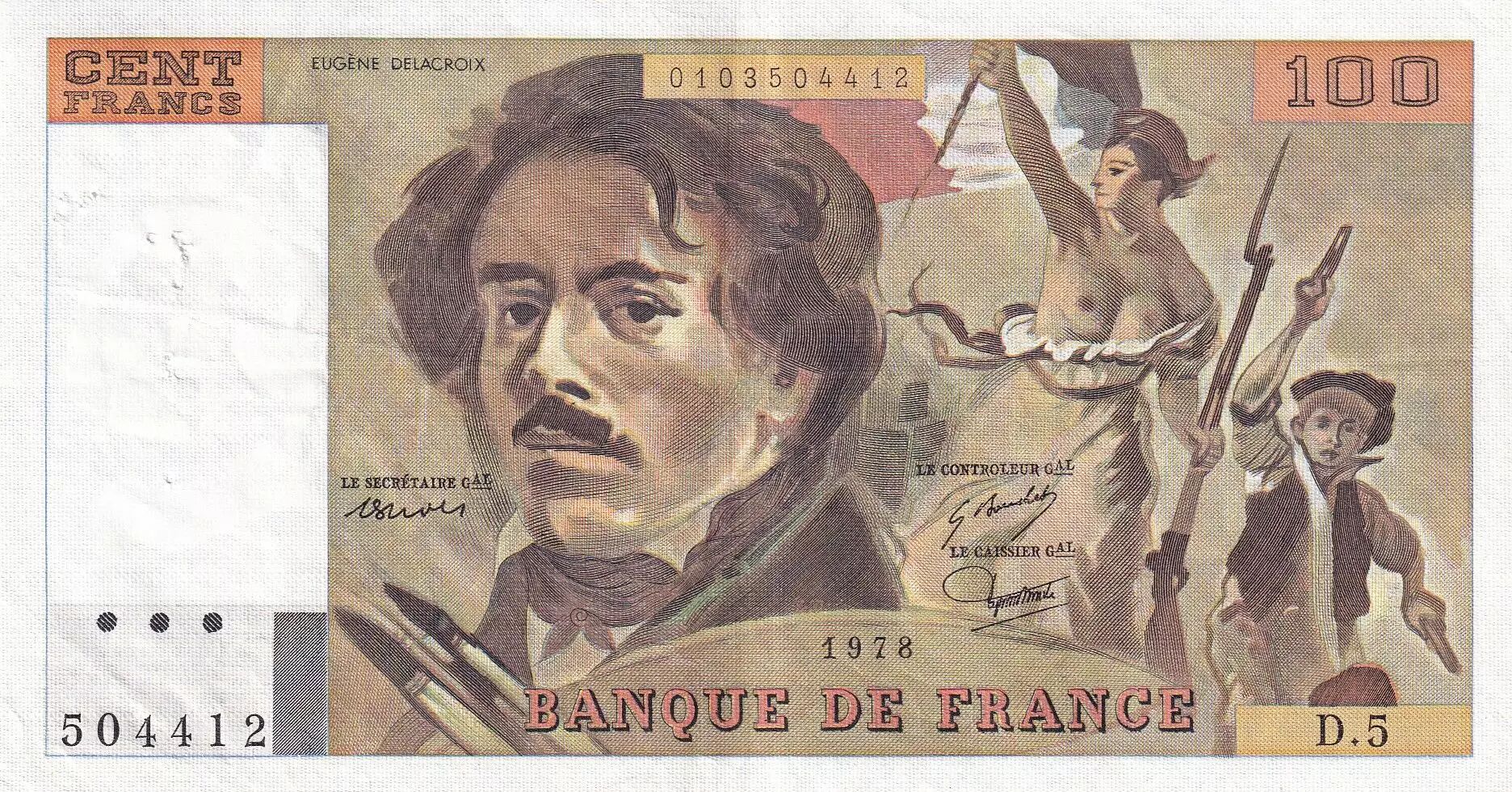 Accueil > Archivage > France 100 Francs - Delacroix - 1978 - Série D.5 - F.69.01d