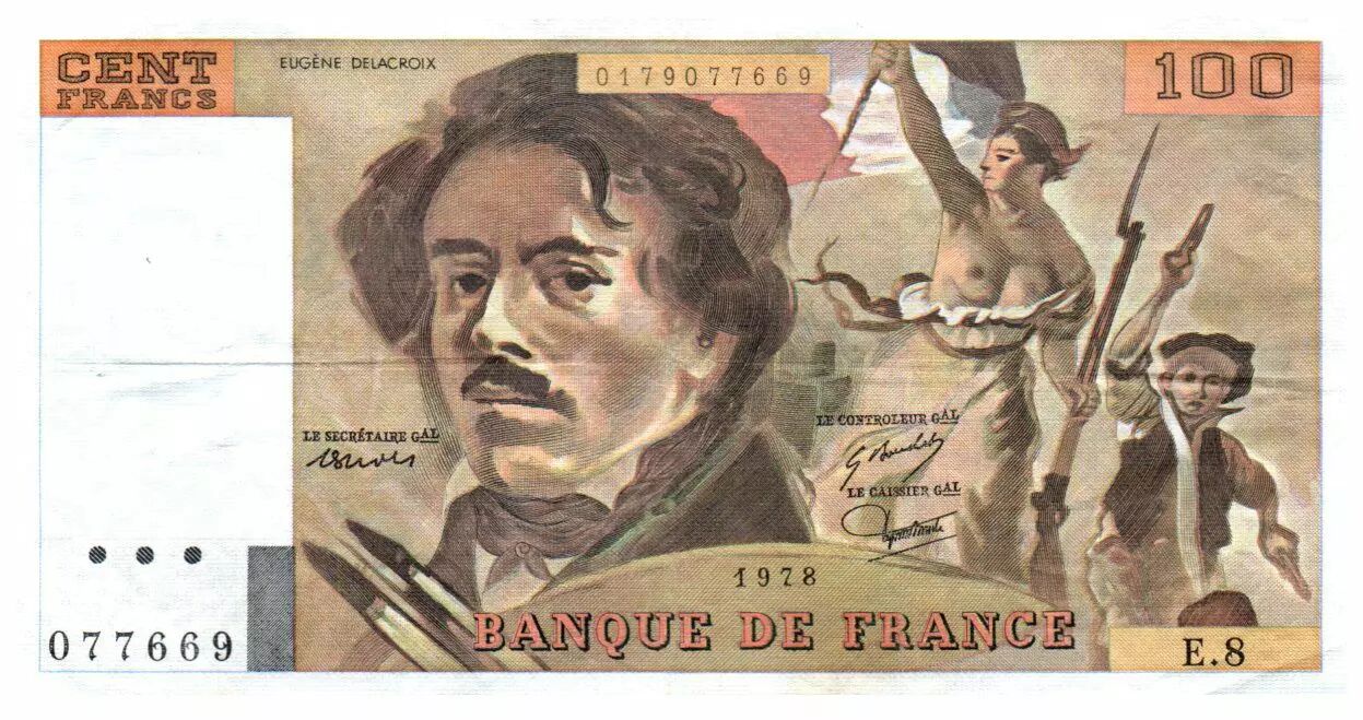 Accueil > Billets Français > Billets Banque de France > Billets 100 Francs > Delacroix type 1978 (1978-1995) > France 100 Francs Delacroix - 1978 Série E.8 - Grand filigrane - TTB