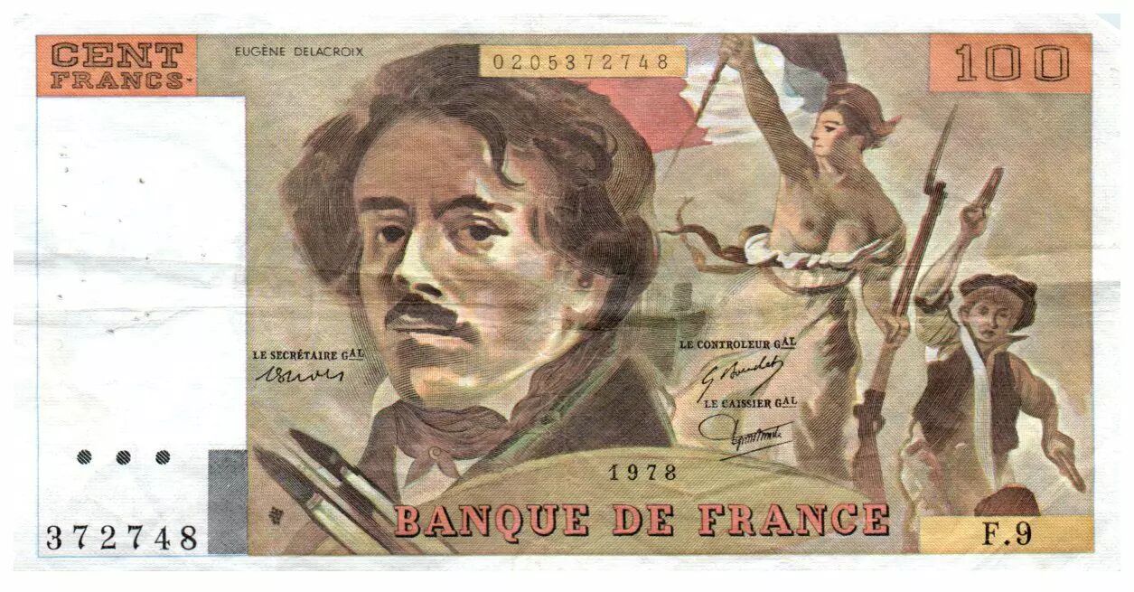 Accueil > Archivage > France 100 Francs Delacroix - 1978 Série F.9 - Grand filigrane - TTB
