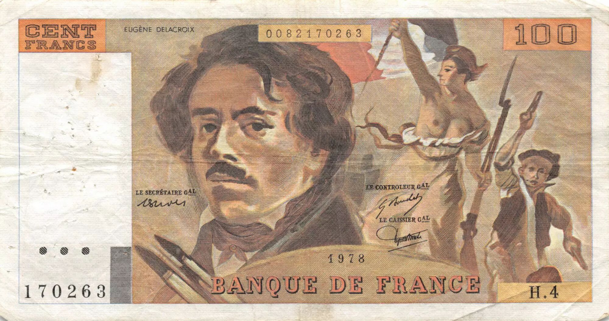 Billet France 100 Francs Delacroix - 1978 Série H.4 - Hachuré - TTB