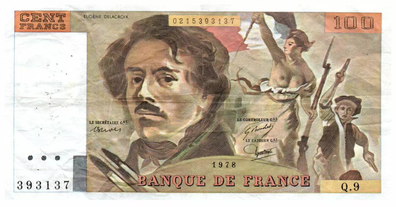 Accueil > Billets Français > Billets Banque de France > Billets 100 Francs > Delacroix type 1978 (1978-1995) > France 100 Francs Delacroix - 1978 Série Q.9 - Grand filigrane - TTB