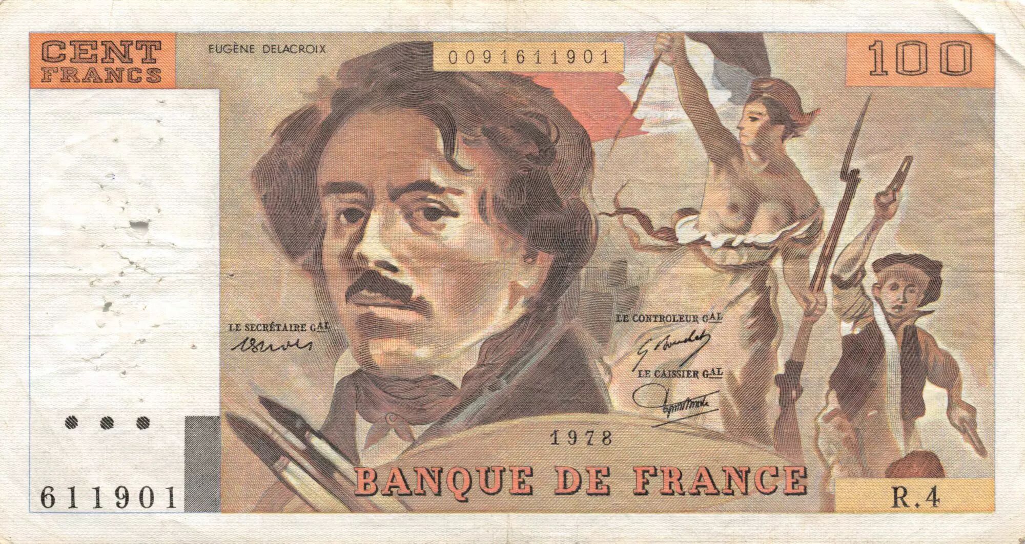 Billet France 100 Francs Delacroix - 1978 Série R.4 - Hachuré - TB
