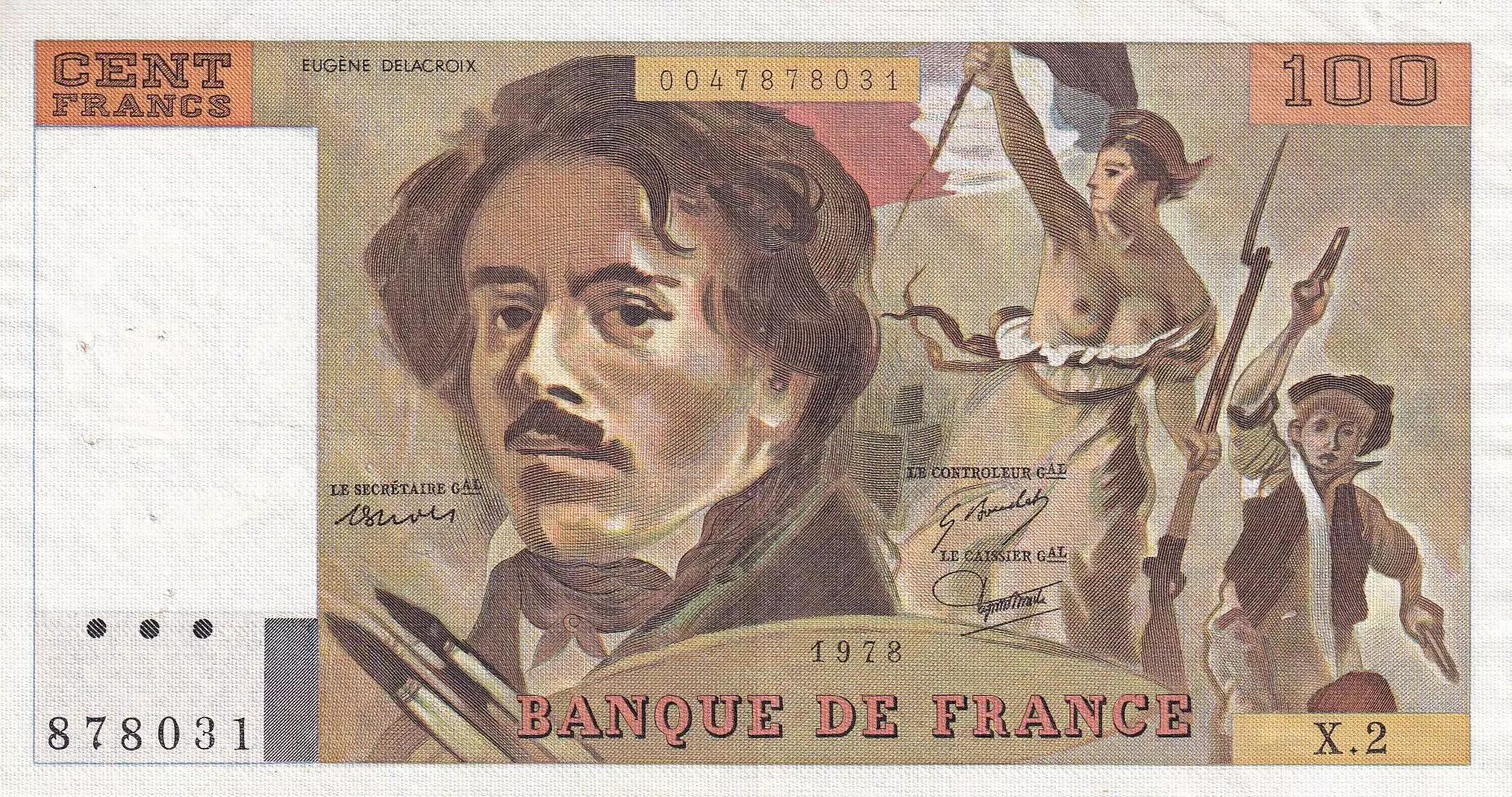 Billet France 100 Francs - Delacroix - 1978 - Série X.2 - Hachuré - F.69.01a