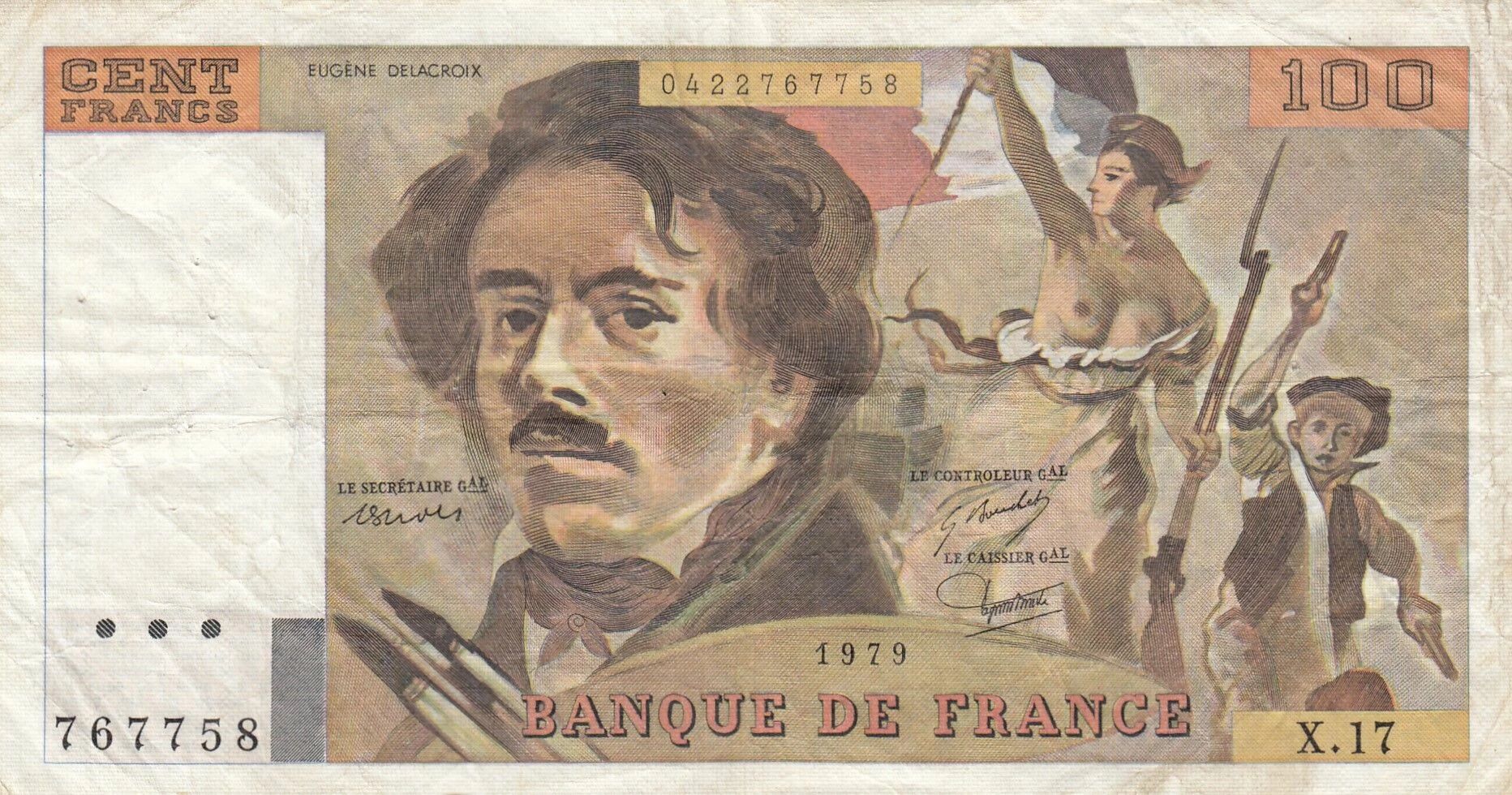 Ce billet de banque est un 100 Francs, émis en France. La coupure a été mise en circulation en 1979. Le billet appartient à la série X.17.