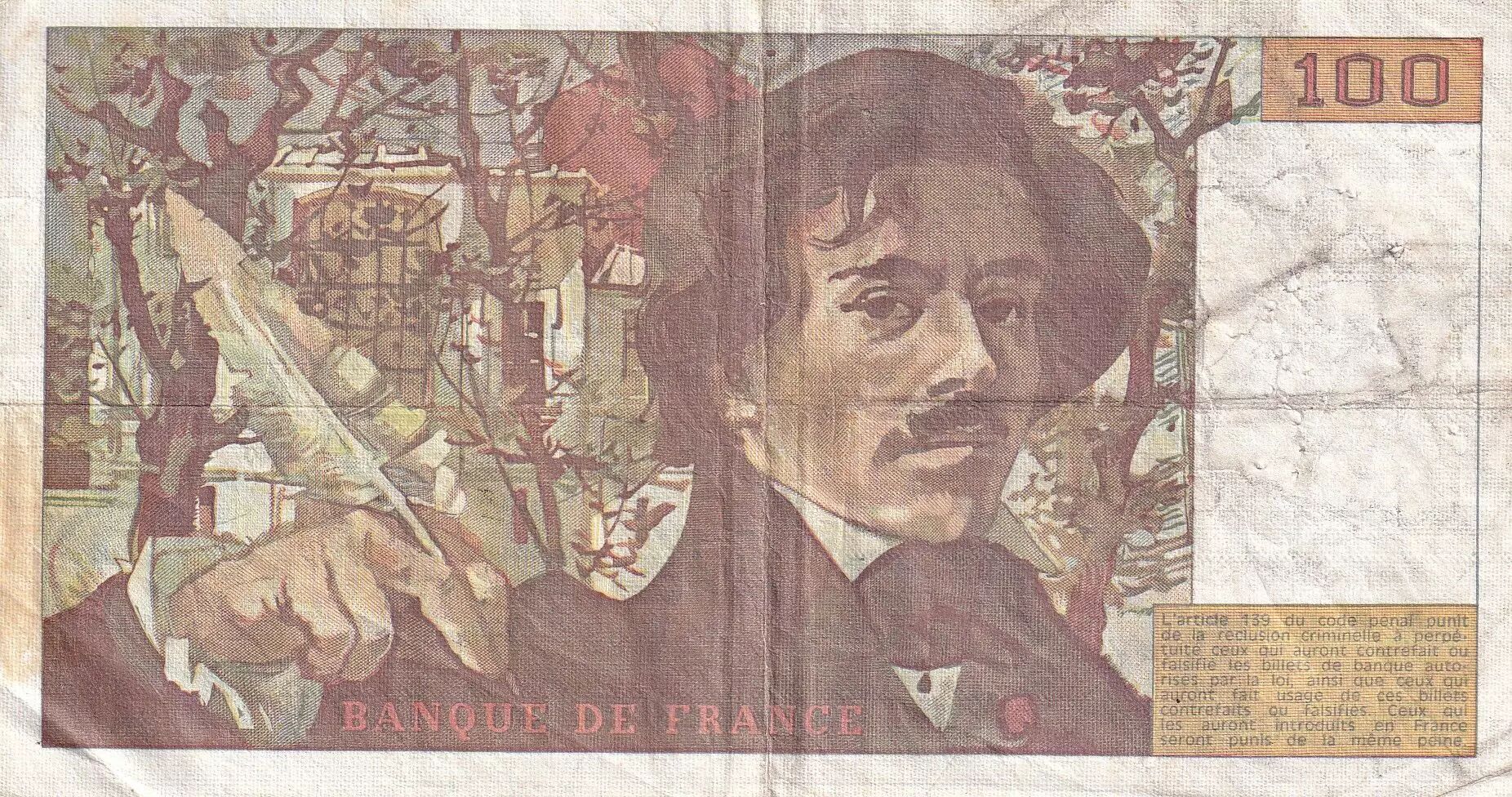 Banknote France 100 Francs - Delacroix - 1980 - Serial W.36 - P.154