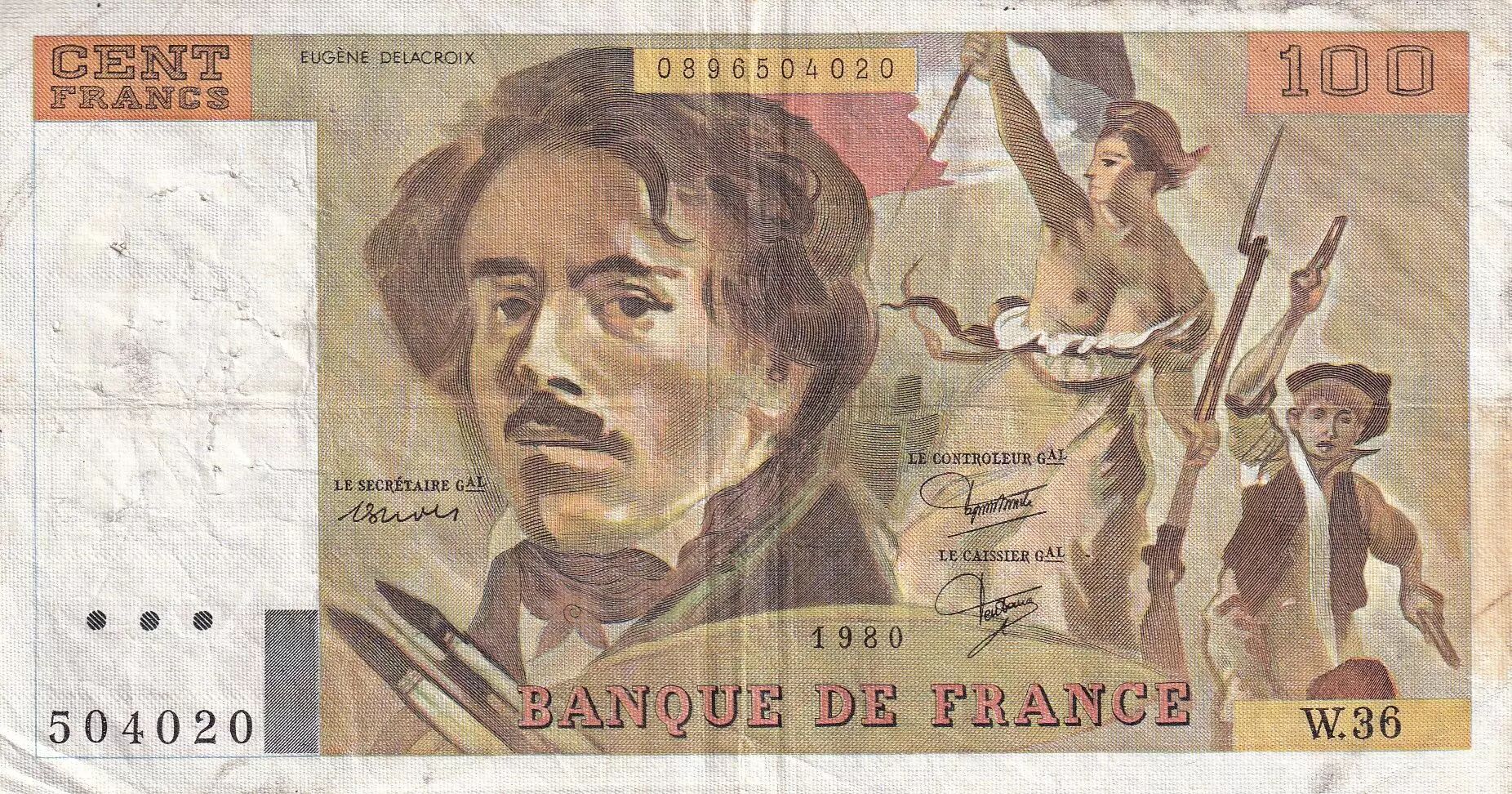 Billet France 100 Francs - Delacroix - 1980 - Série W.36 - F.69.04b