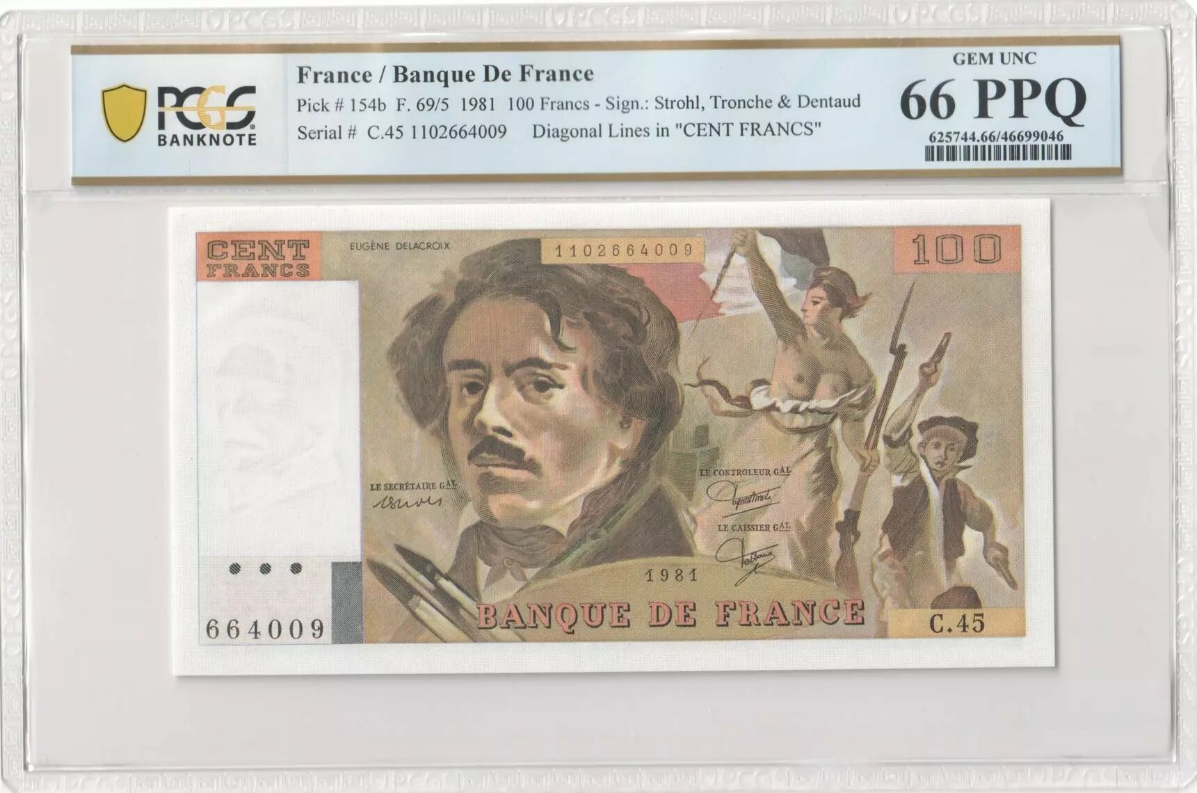 Home > > France 100 Francs Delacroix - 1981 Serial C.45 - PCGS 66 PPQ
