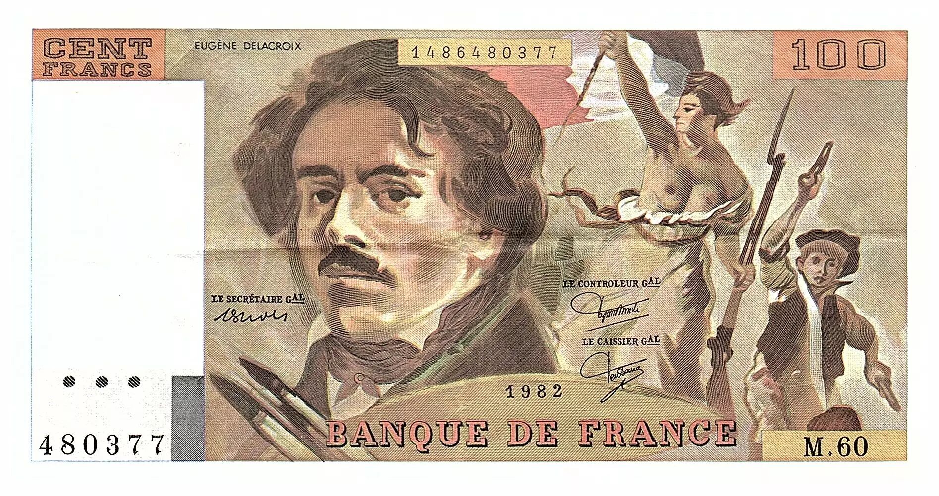 Accueil > Archivage > archivage-Billets Français > France 100 Francs Delacroix - 1982 - Série M.60 - Fay.69.06