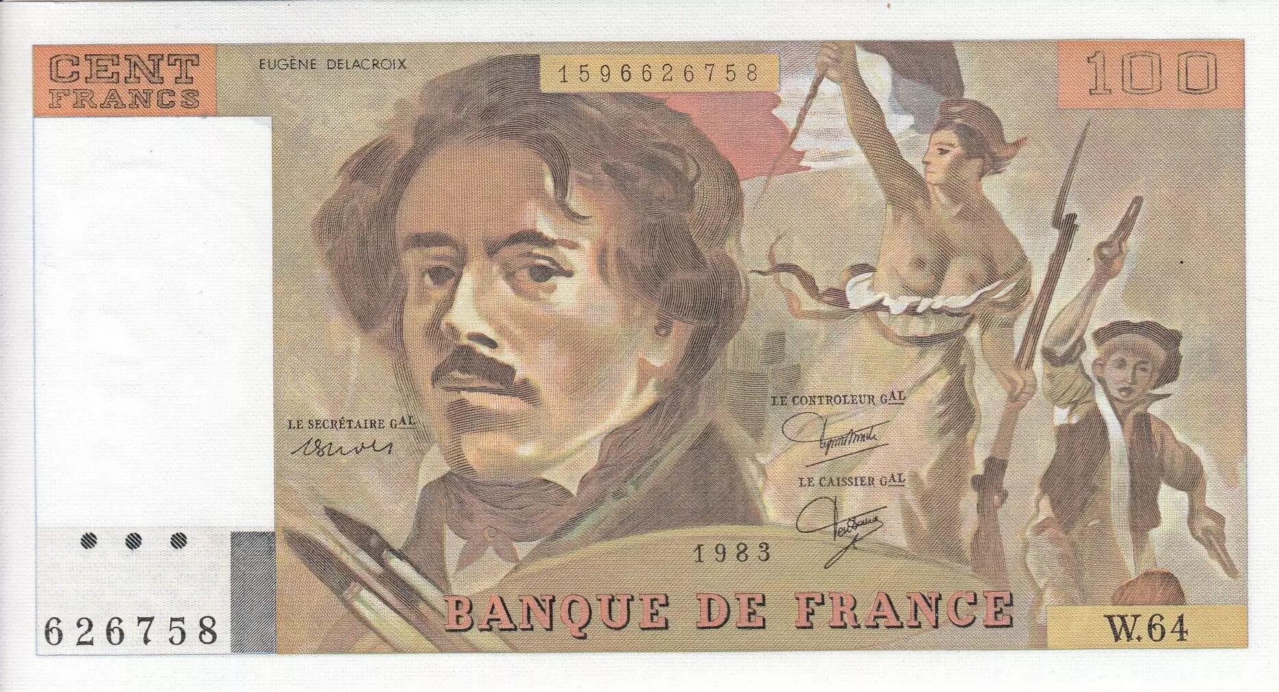 Banknote France 100 Francs - Delacroix - 1983 - Serial W.64