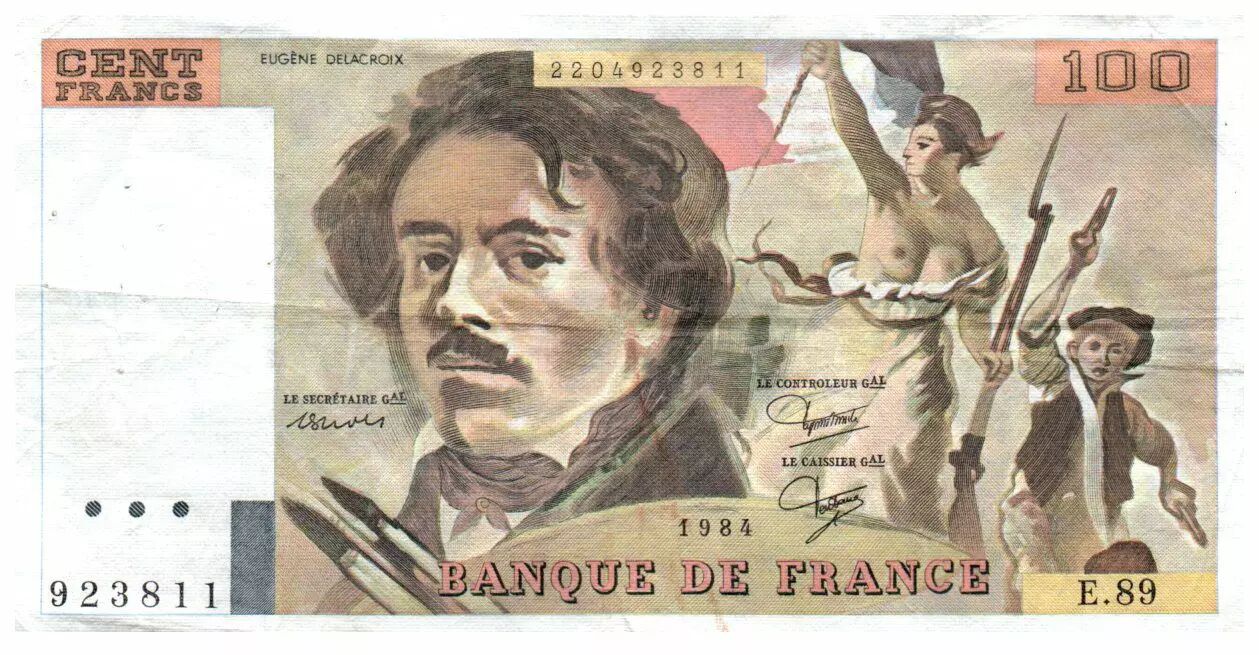 Banknote France 100 Francs Delacroix - 1984 Serial E.89 - VF