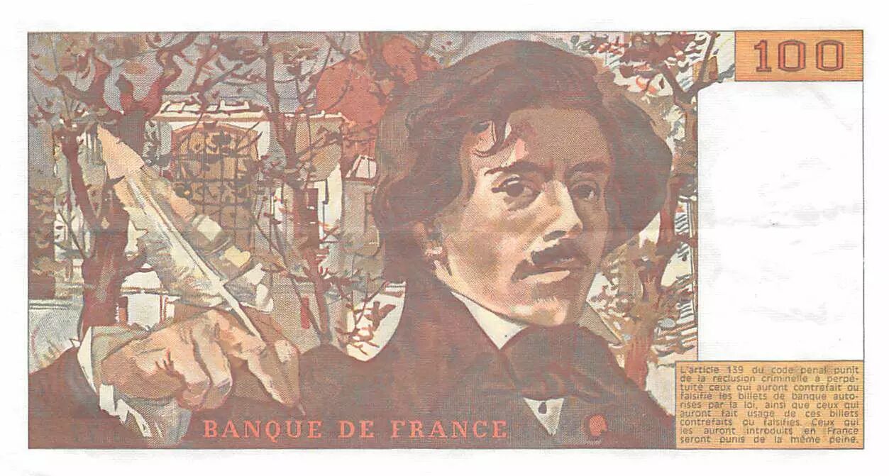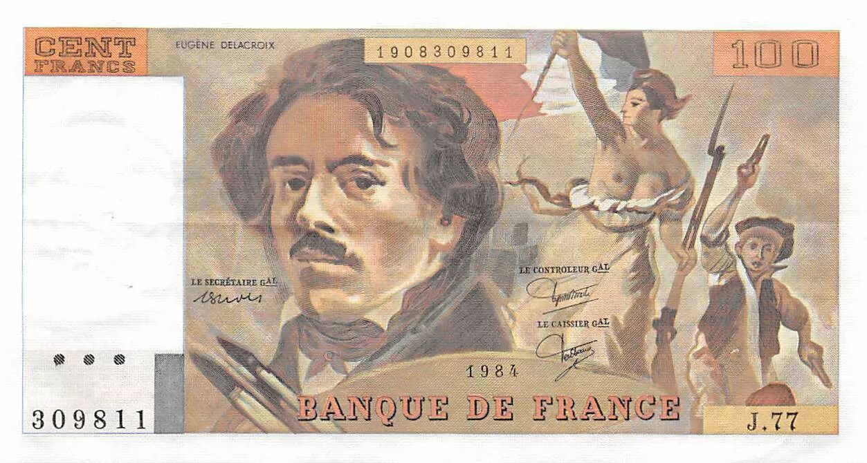 Banknote France 100 Francs Delacroix - 1984 Serial J.77 - XF