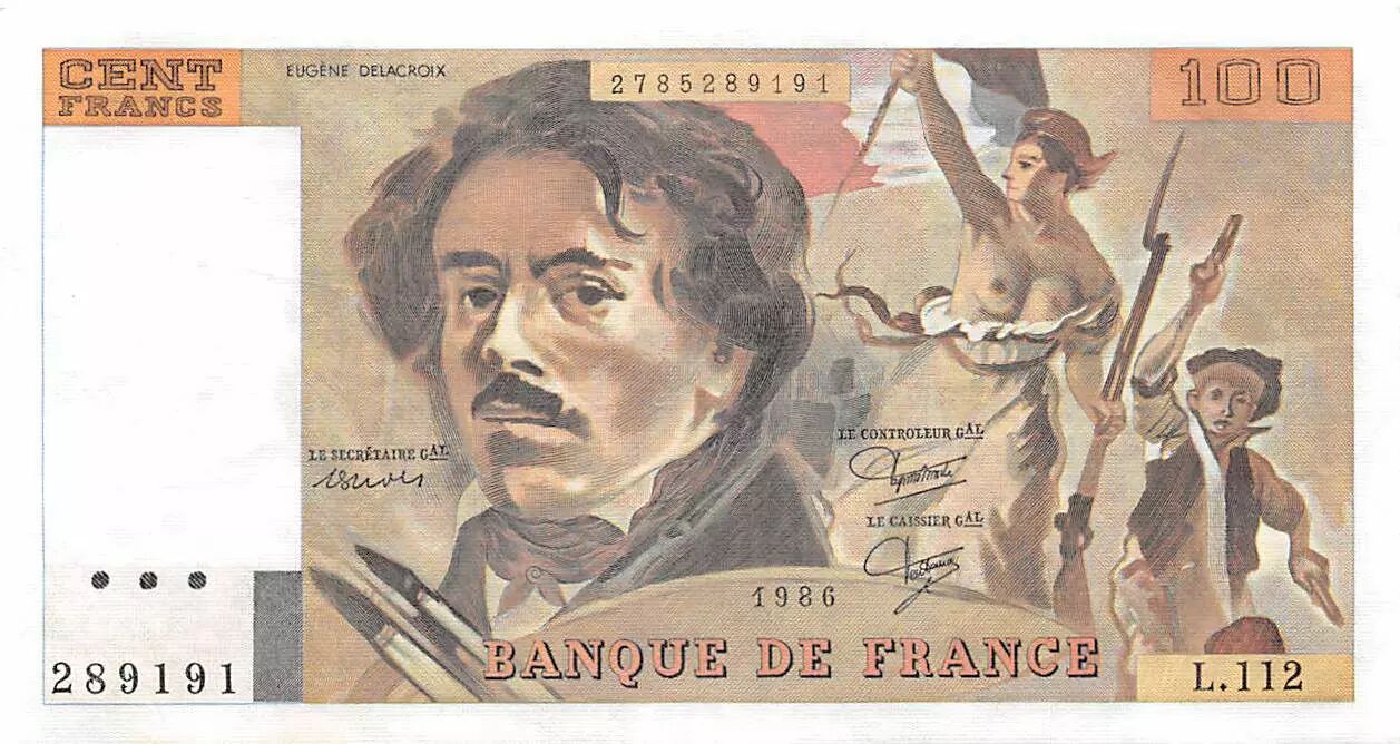 Home > > France 100 Francs Delacroix - 1986 Serial L.112 - XF