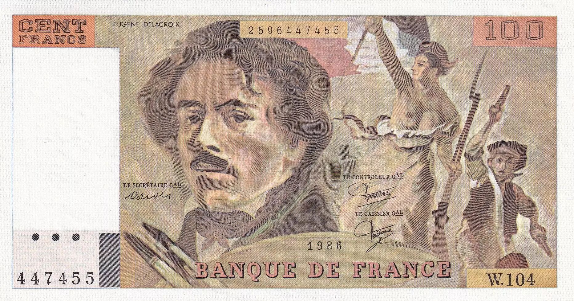 Billet France 100 Francs - Delacroix - 1986 - Série W.104 - F.69.10