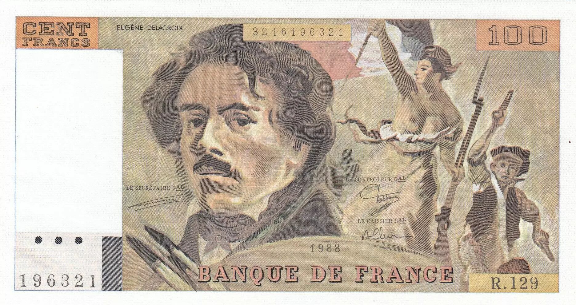 Banknote France 100 Francs Delacroix - 1988 Serial R.129