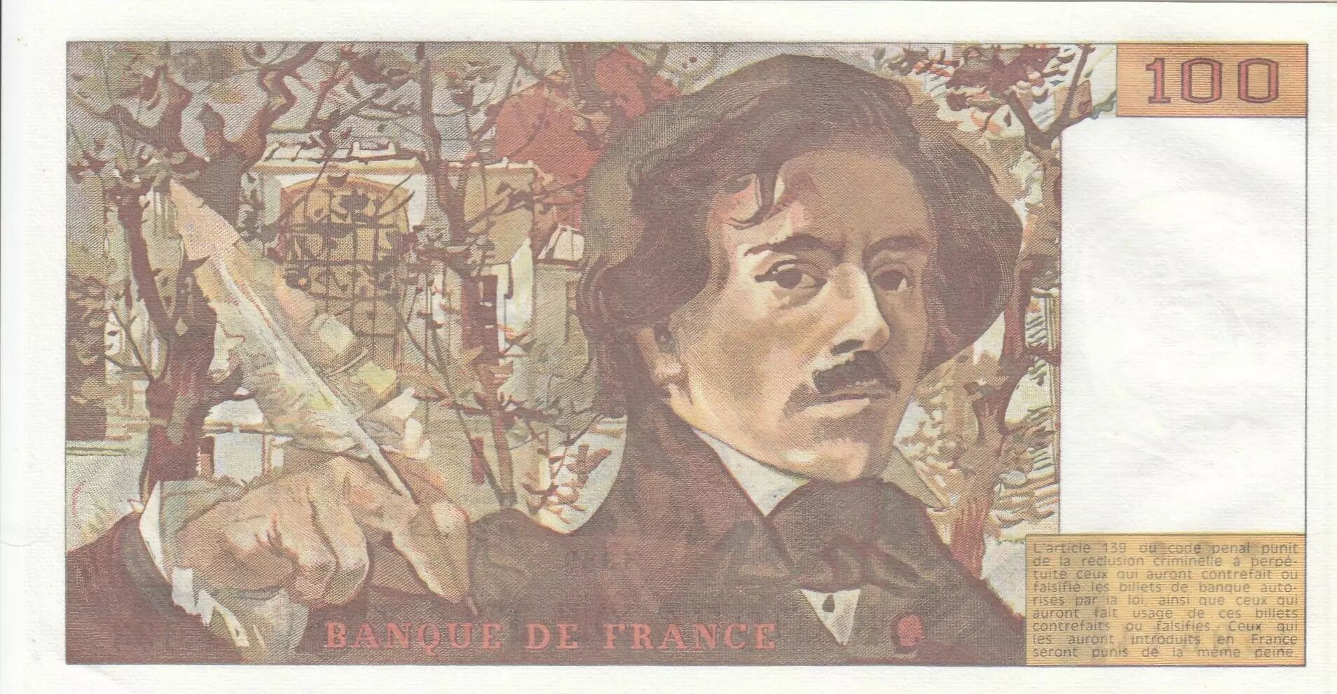 Banknote France 100 Francs - Delacroix - 1989 - Série F.133
