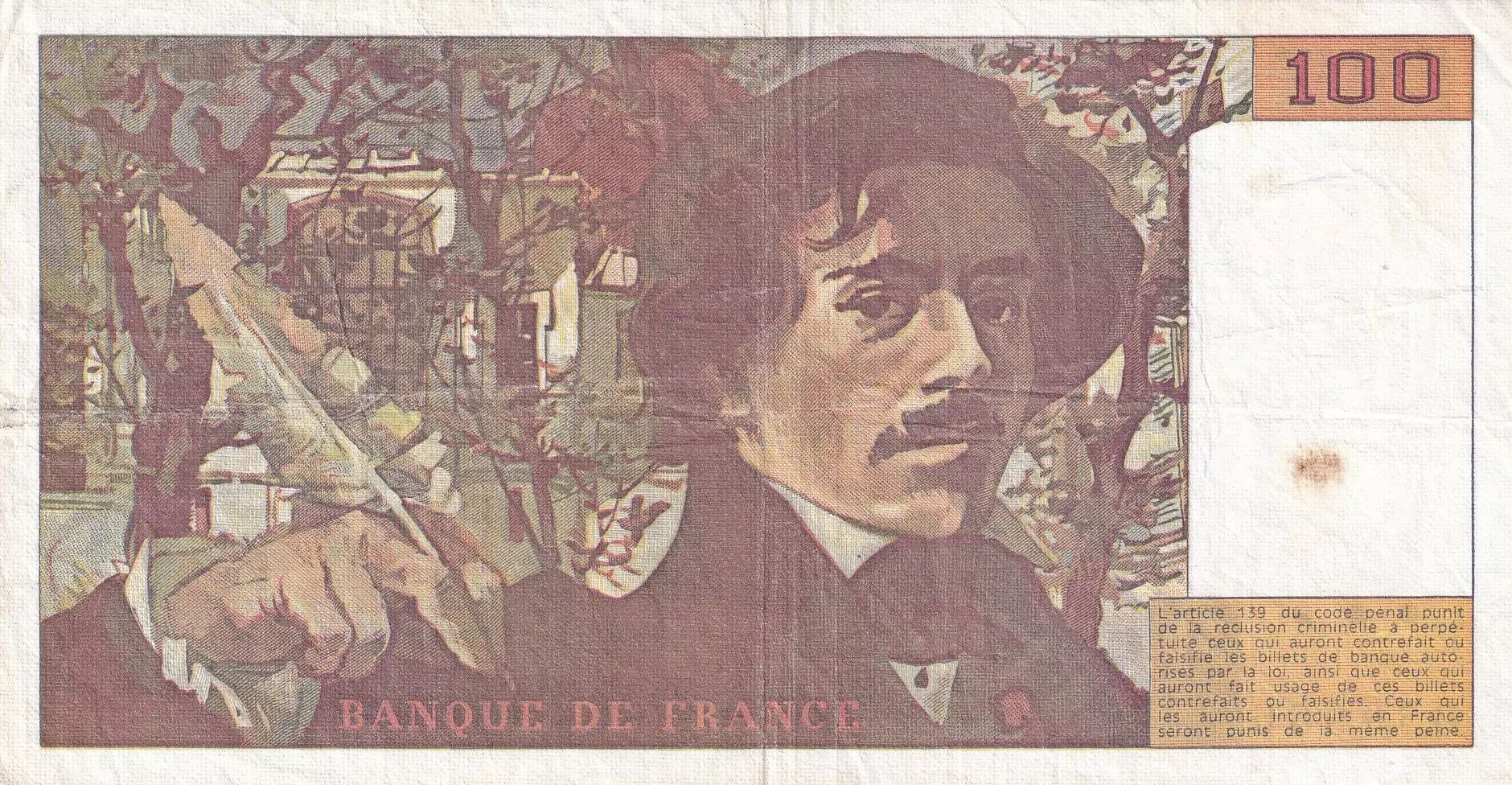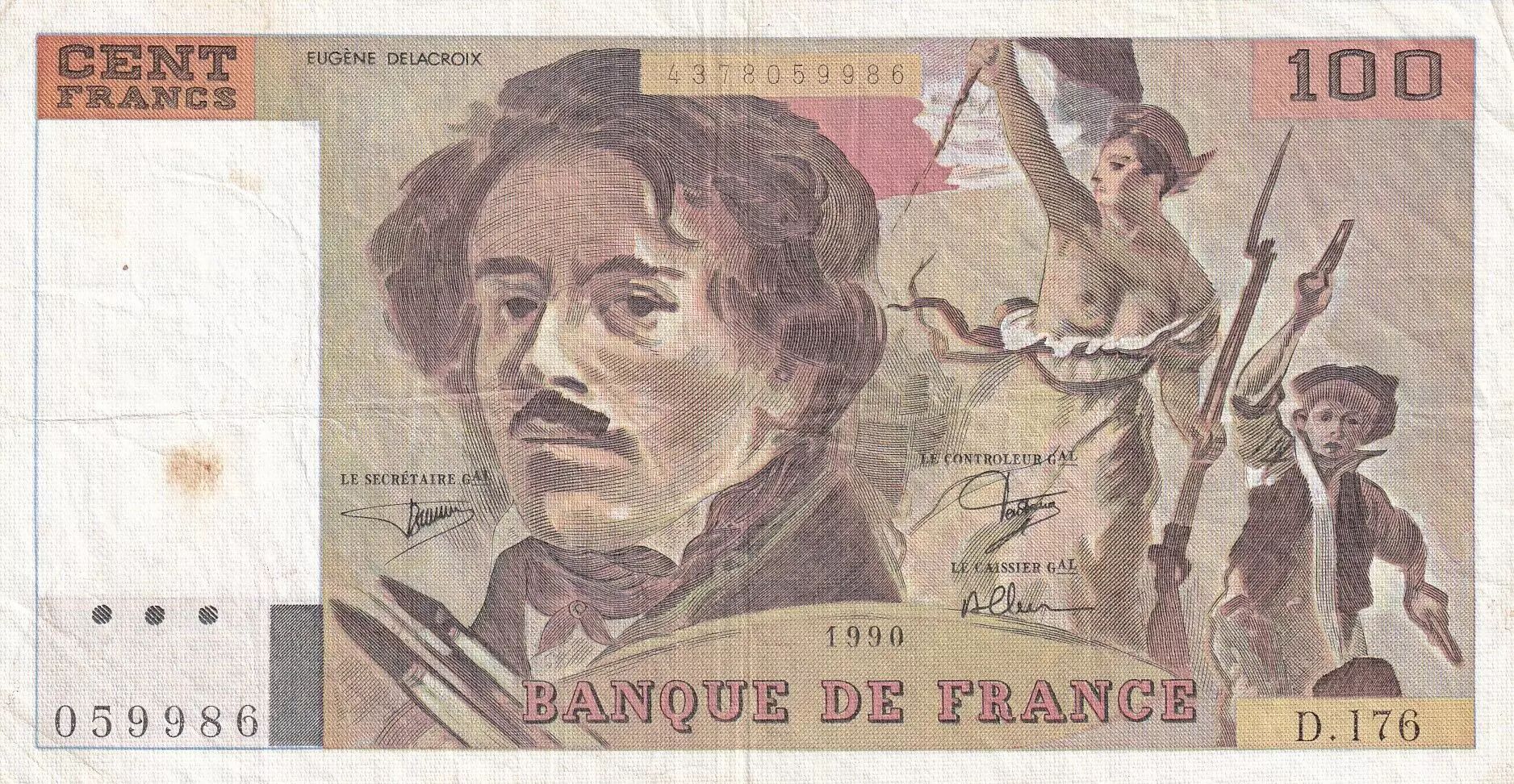 Home > > France 100 Francs - Delacroix - 1990 - Serial D.176