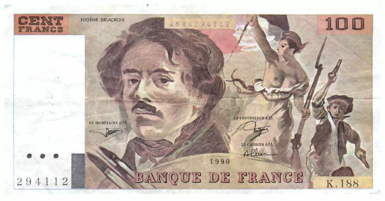 Banknote France 100 Francs Delacroix - 1990 Serial K.188 - VF