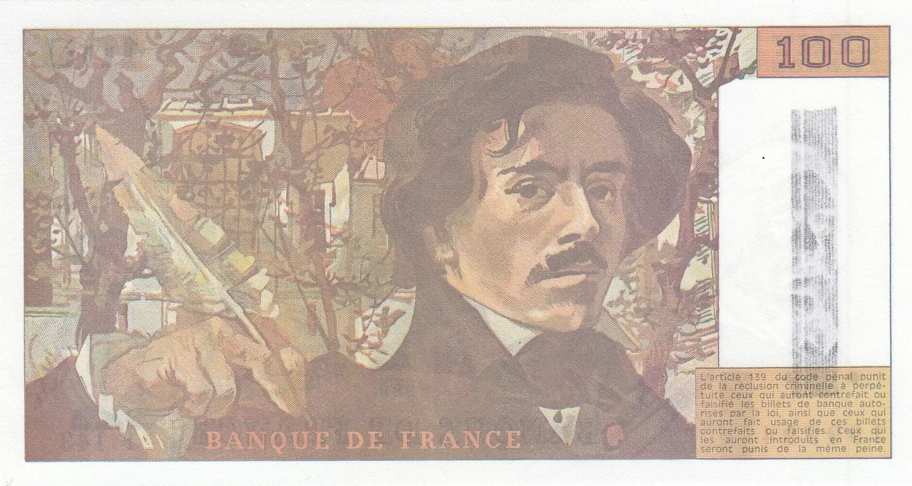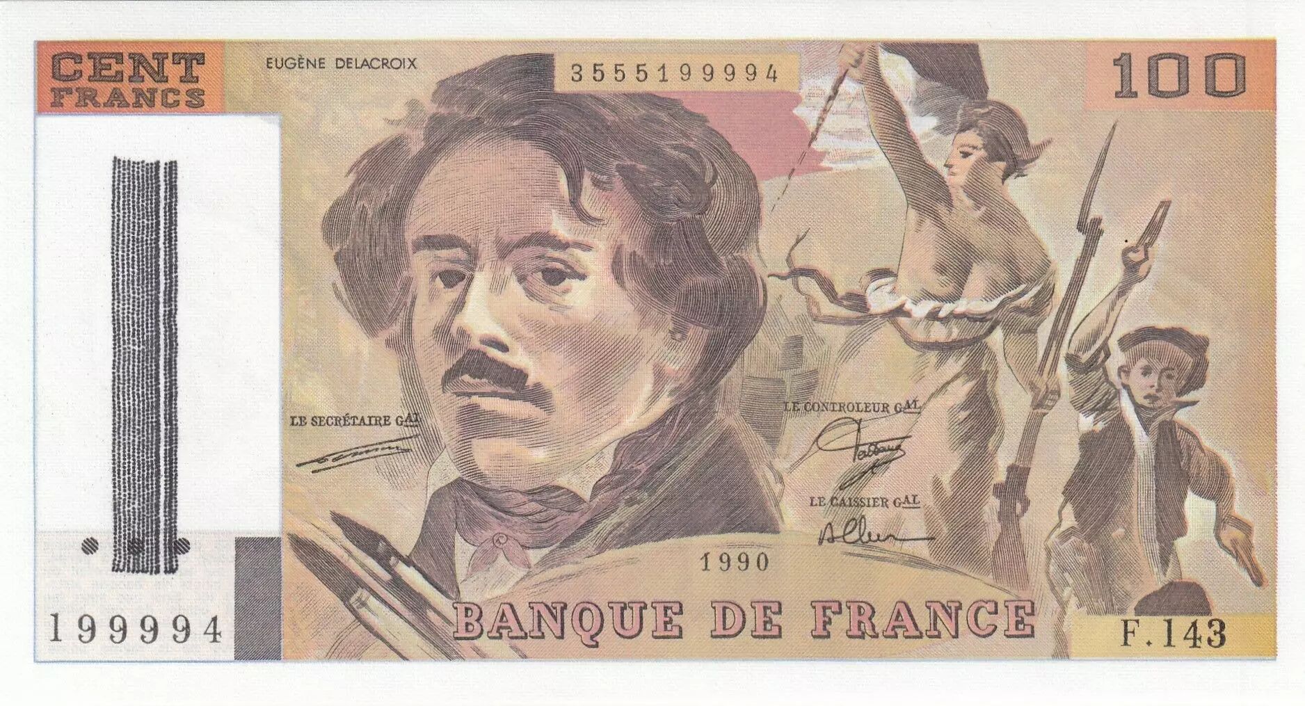 Accueil > Archivage > archivage-Billets Français > France 100 Francs - Delacroix - 1990 - Série F.143 - Barre annulation BDF