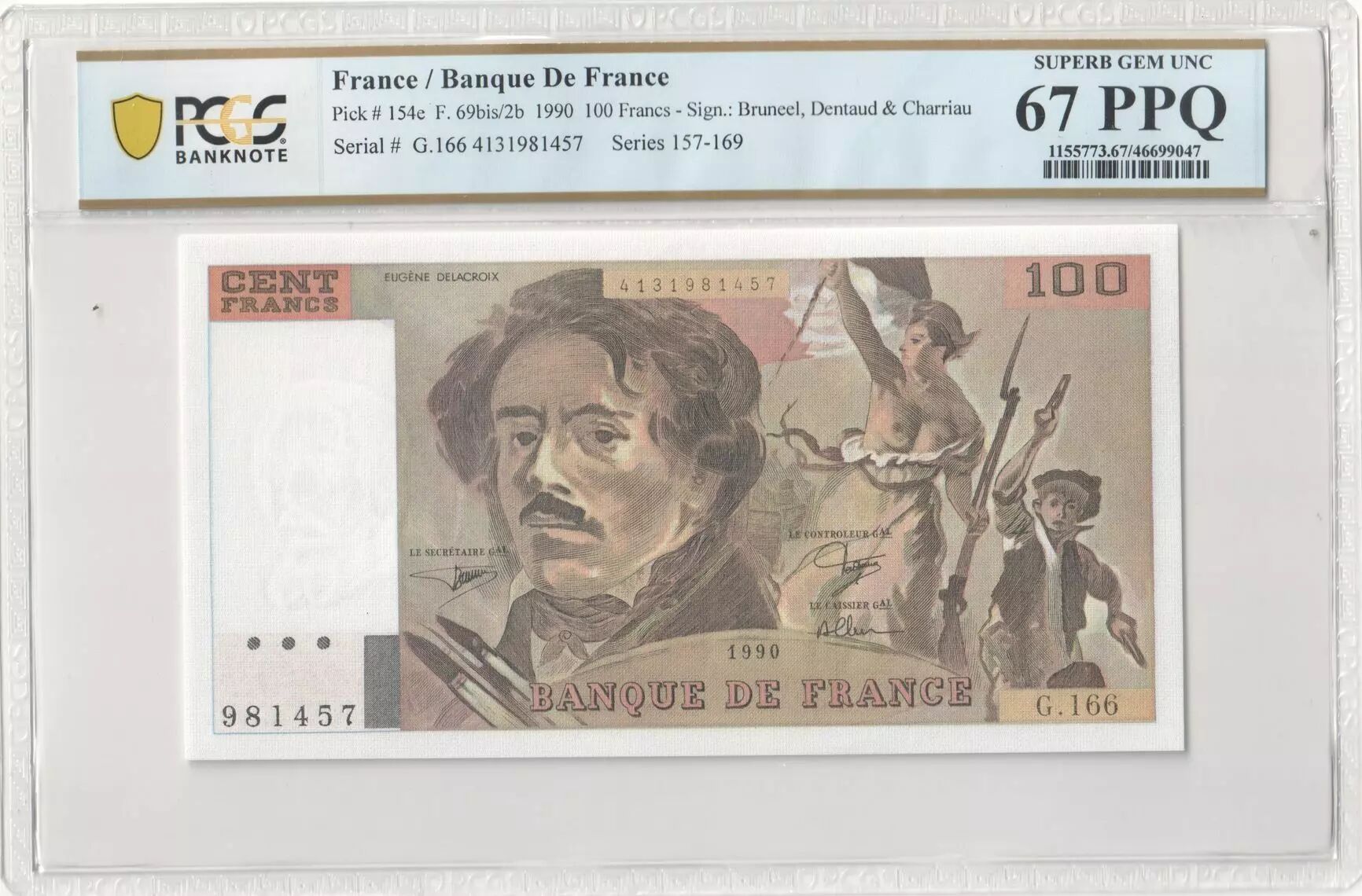Billet France 100 Francs Delacroix - 1990 - Série G.166 - PCGS 67 PPQ
