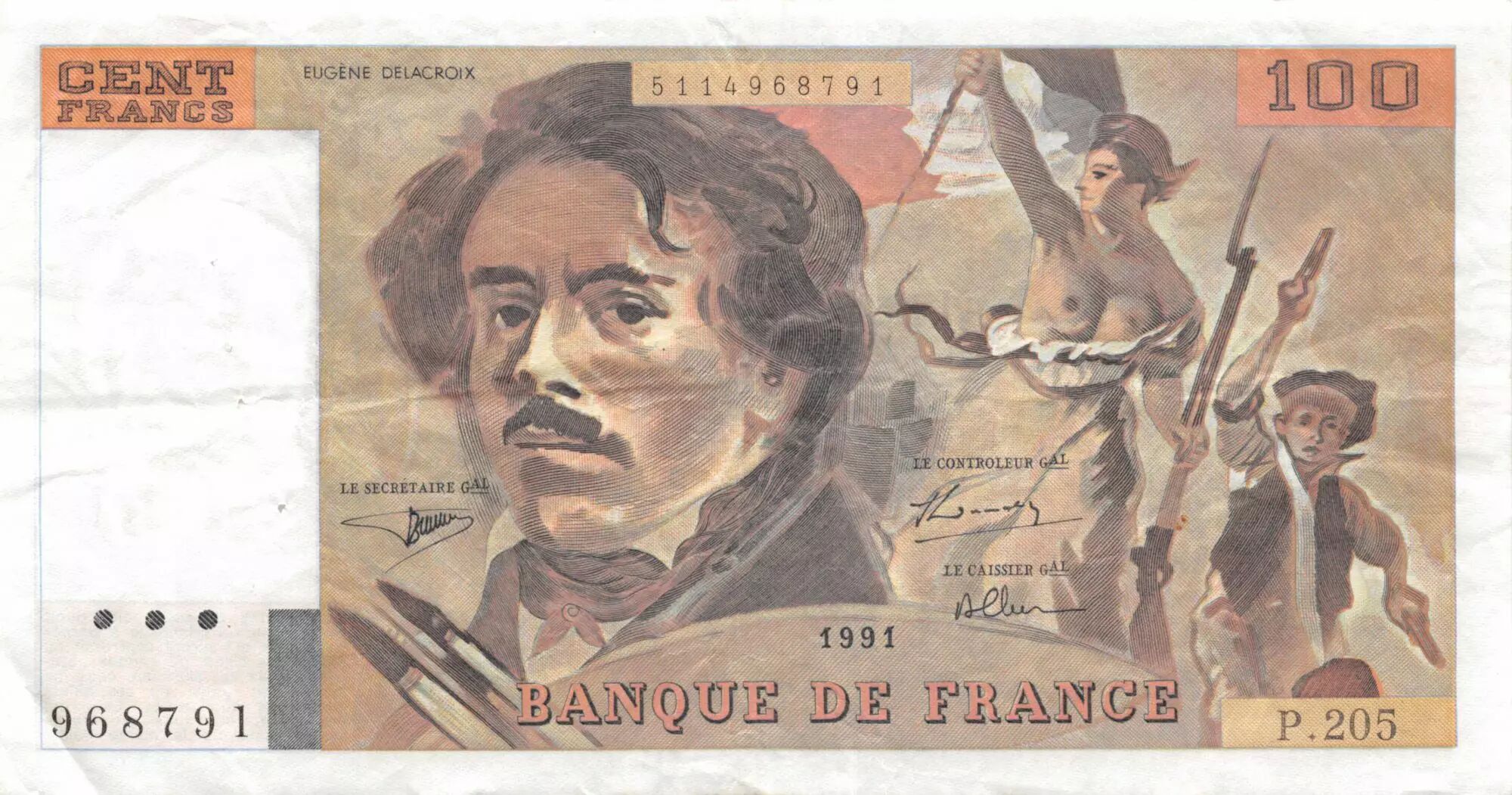 Banknote France 100 Francs Delacroix - 1991 Serial P.205 - VF