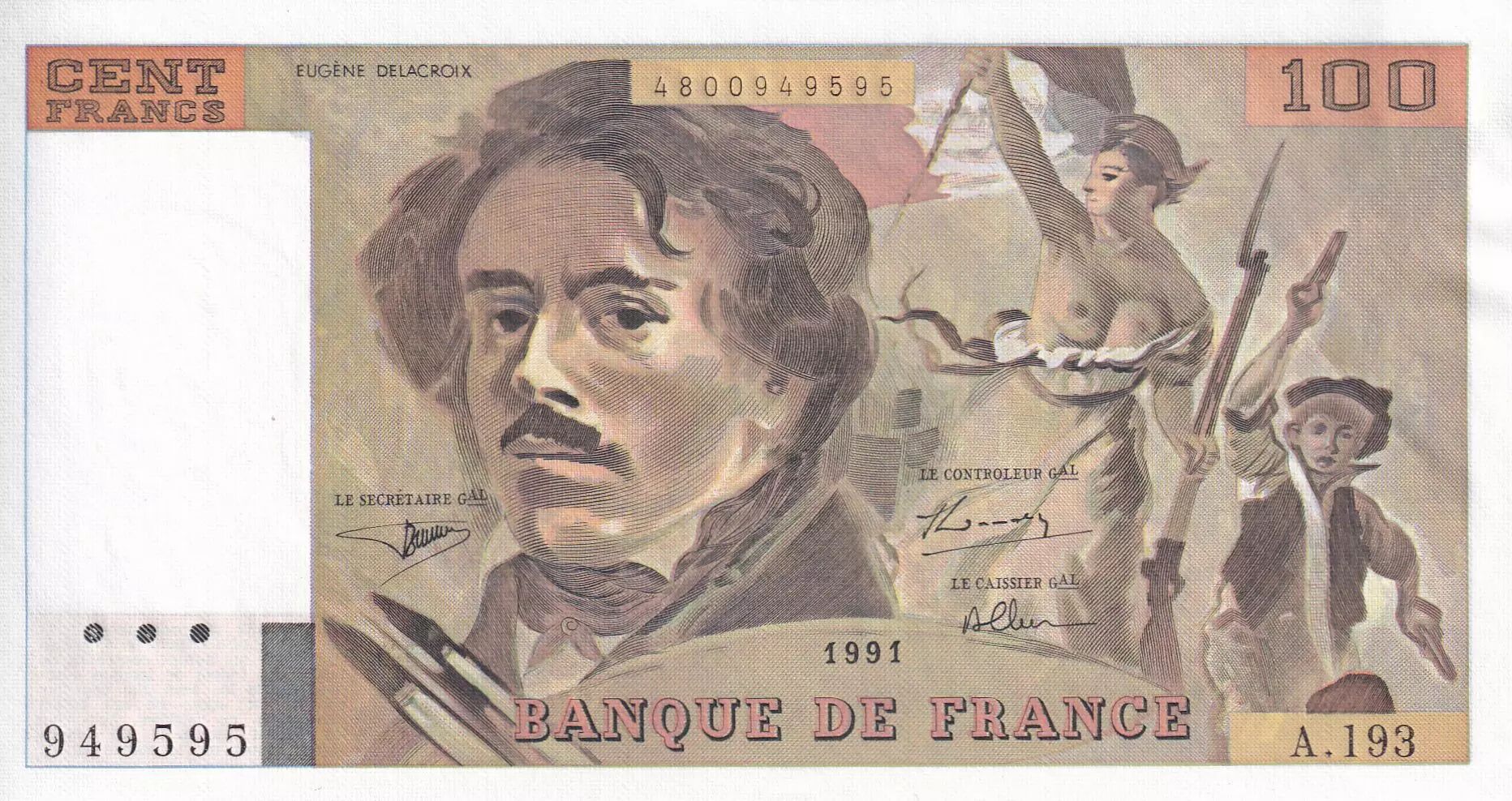 Accueil > Archivage > France 100 Francs - Delacroix - 1991 - Série A.193 - F.69BIS.04a