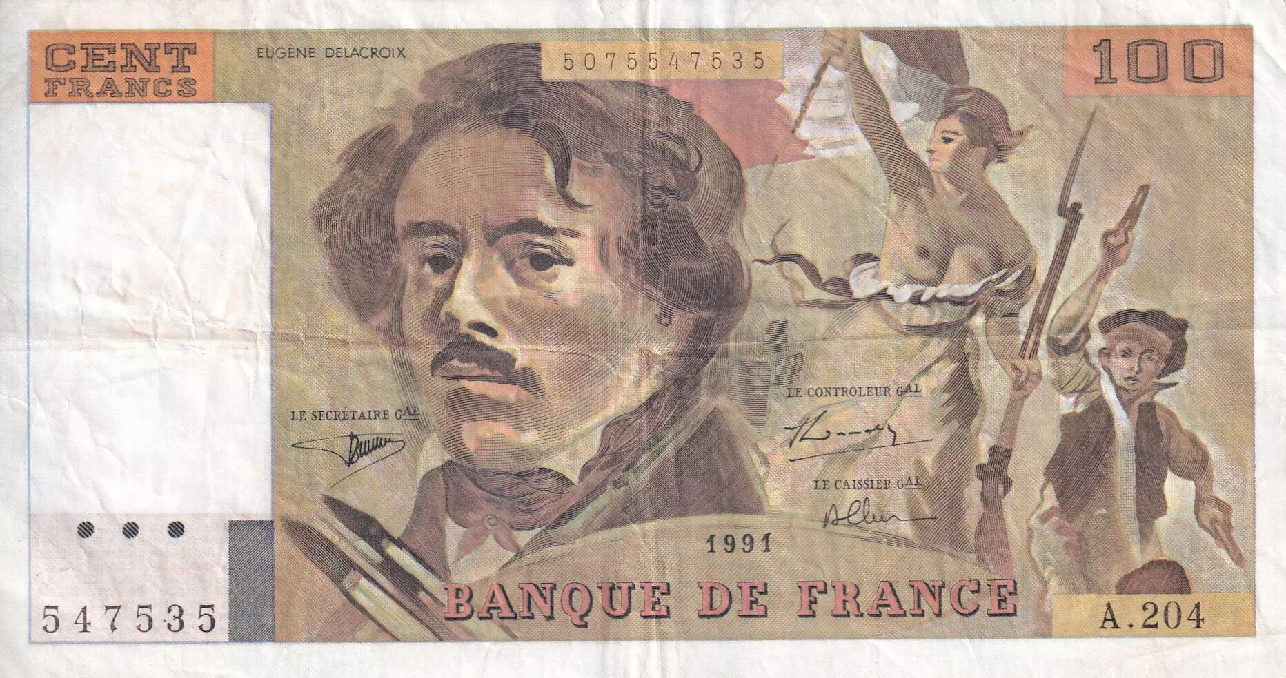 Accueil > Billets Français > Billets Banque de France > Billets 100 Francs > Delacroix type 1978 (1978-1995) > France 100 Francs - Delacroix - 1991 - Série A.204 - F.69BIS.04b