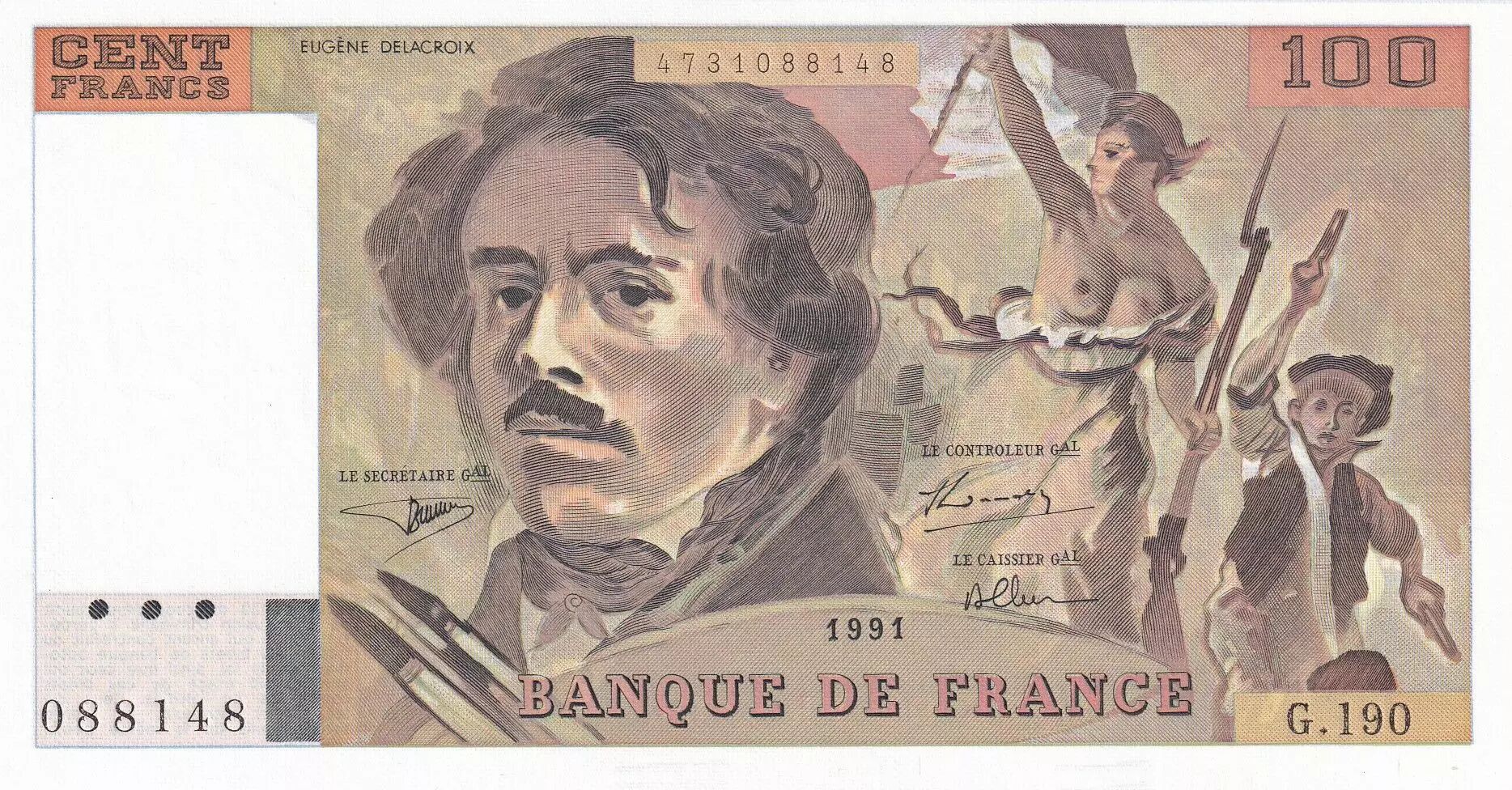 Accueil > Archivage > France 100 Francs Delacroix - 1991 - Série G.190
