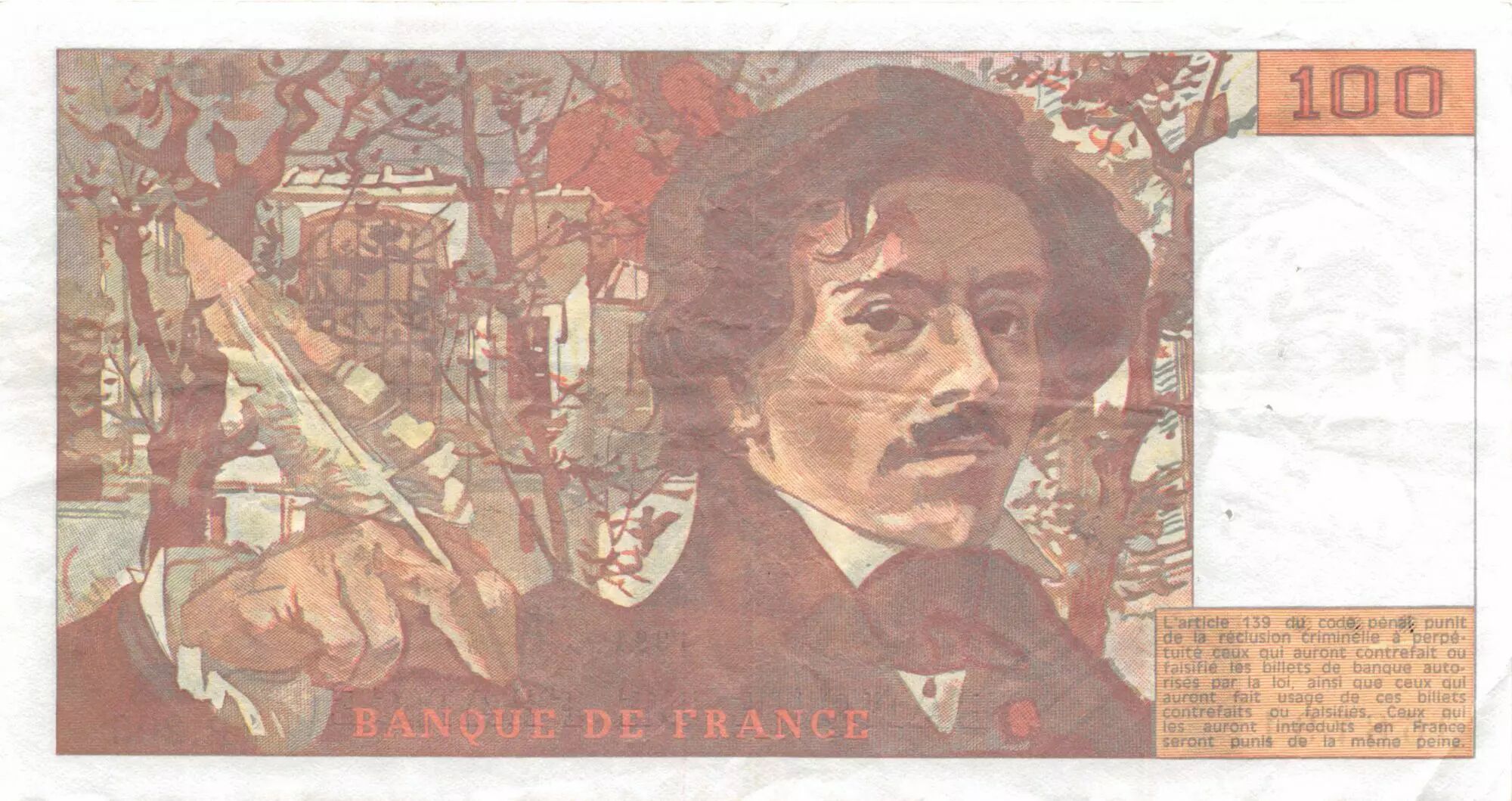 Accueil > Archivage > France 100 Francs Delacroix - 1991 Série P.205 - TTB