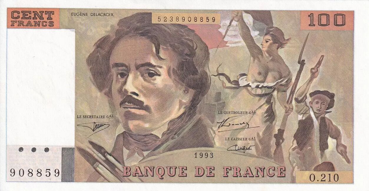 Banknote France 100 Francs Delacroix - 1993 Serial O.210