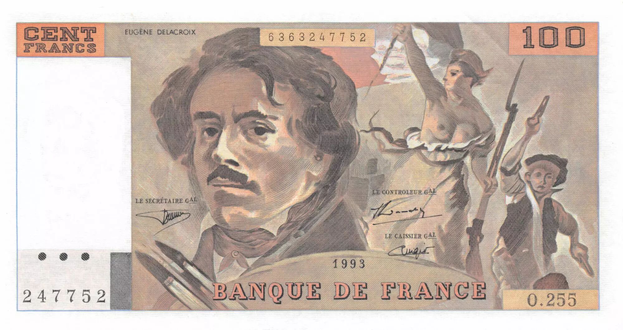 Banknote France 100 Francs Delacroix - 1993 Serial O.255 - AU