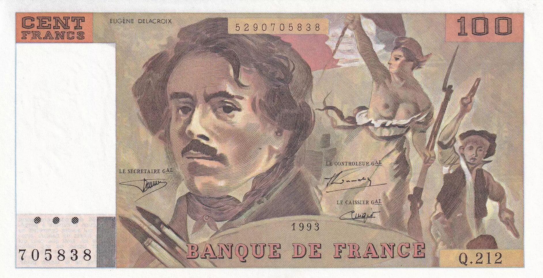 Billet France 100 Francs - Delacroix - 1993 - Série Q.212 - F.69BIS.05