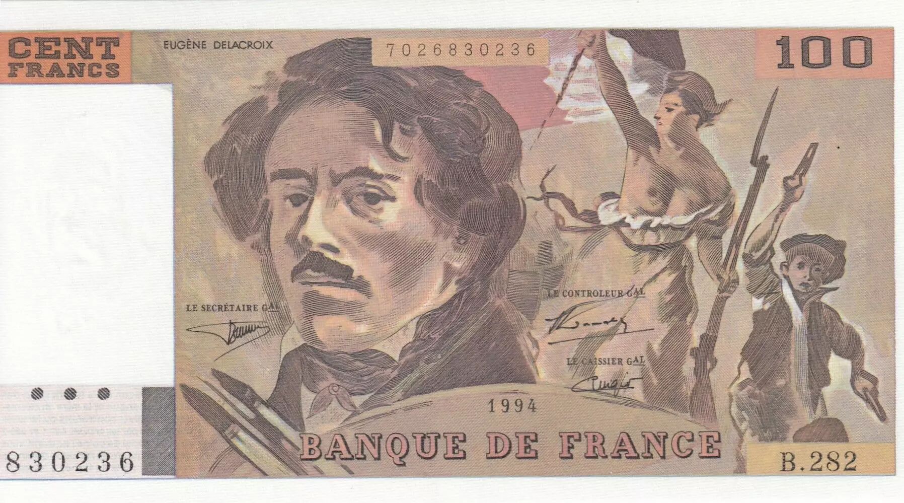 Accueil > Archivage > archivage-Billets Français > France 100 Francs - Delacroix - 1994 - Série B.282