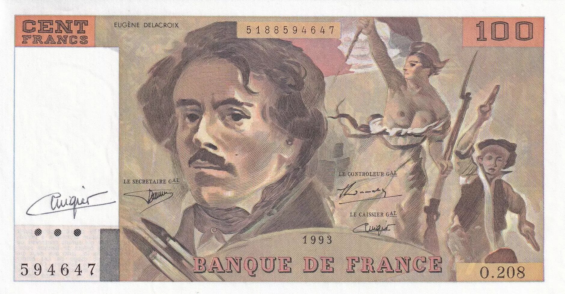 Billet France 100 Francs - Delacroix - Signé Vigier - 1993 - Série O.208 - F.69BIS.05