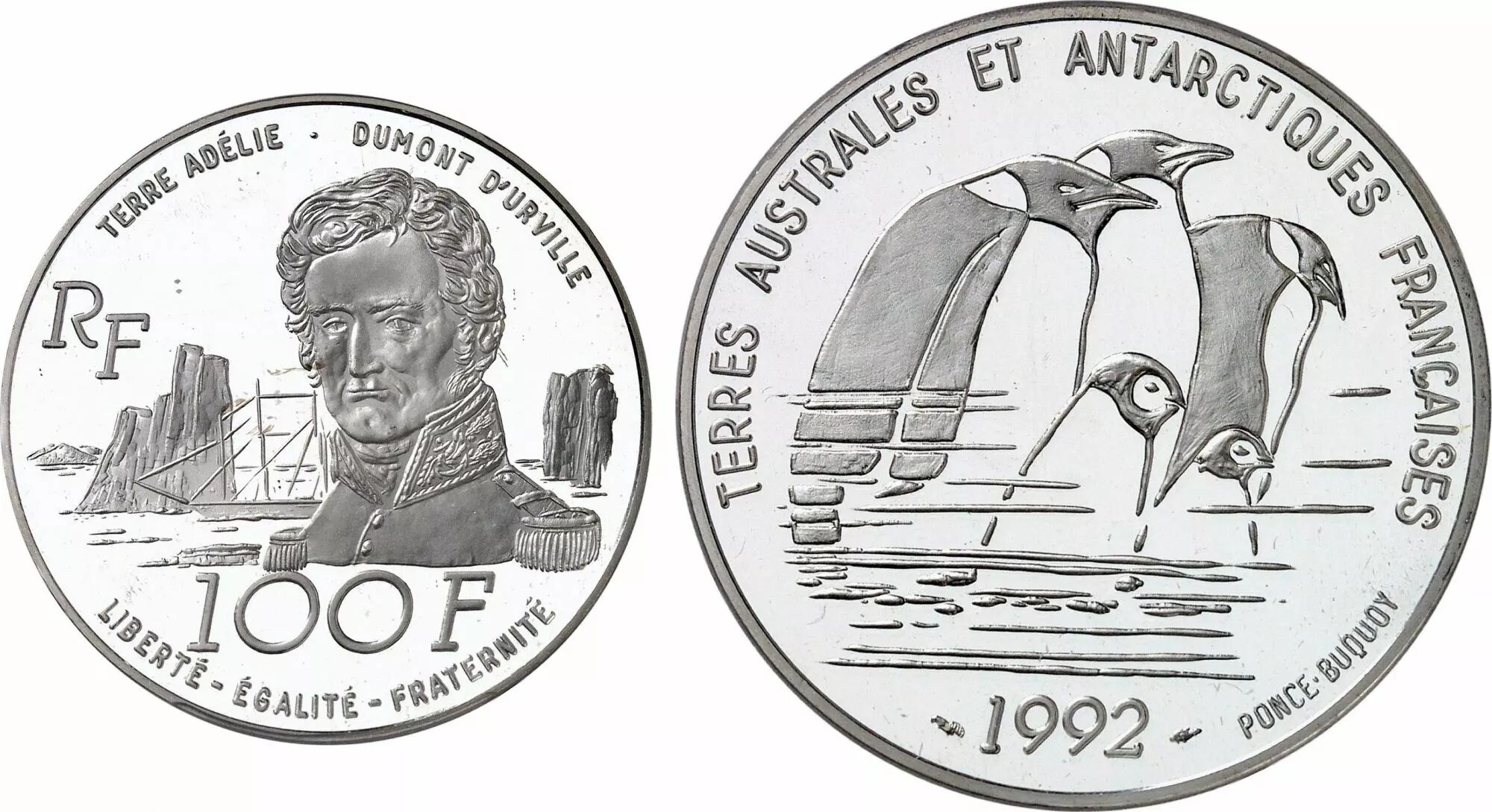 Home > > France 100 Francs Dumont d'Urville - 1992 - Terres Australes et Antartiques Françaises - Proof - Silver - without certificate