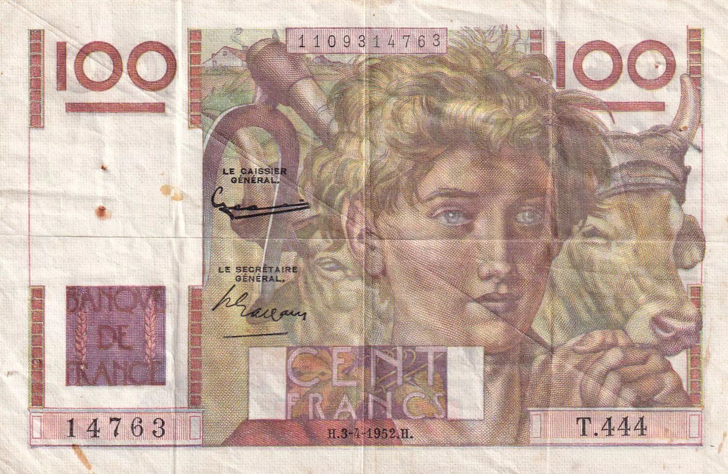 Home > > France 100 Francs Farmer - 03-04-1952 - Serial T.444 - VF