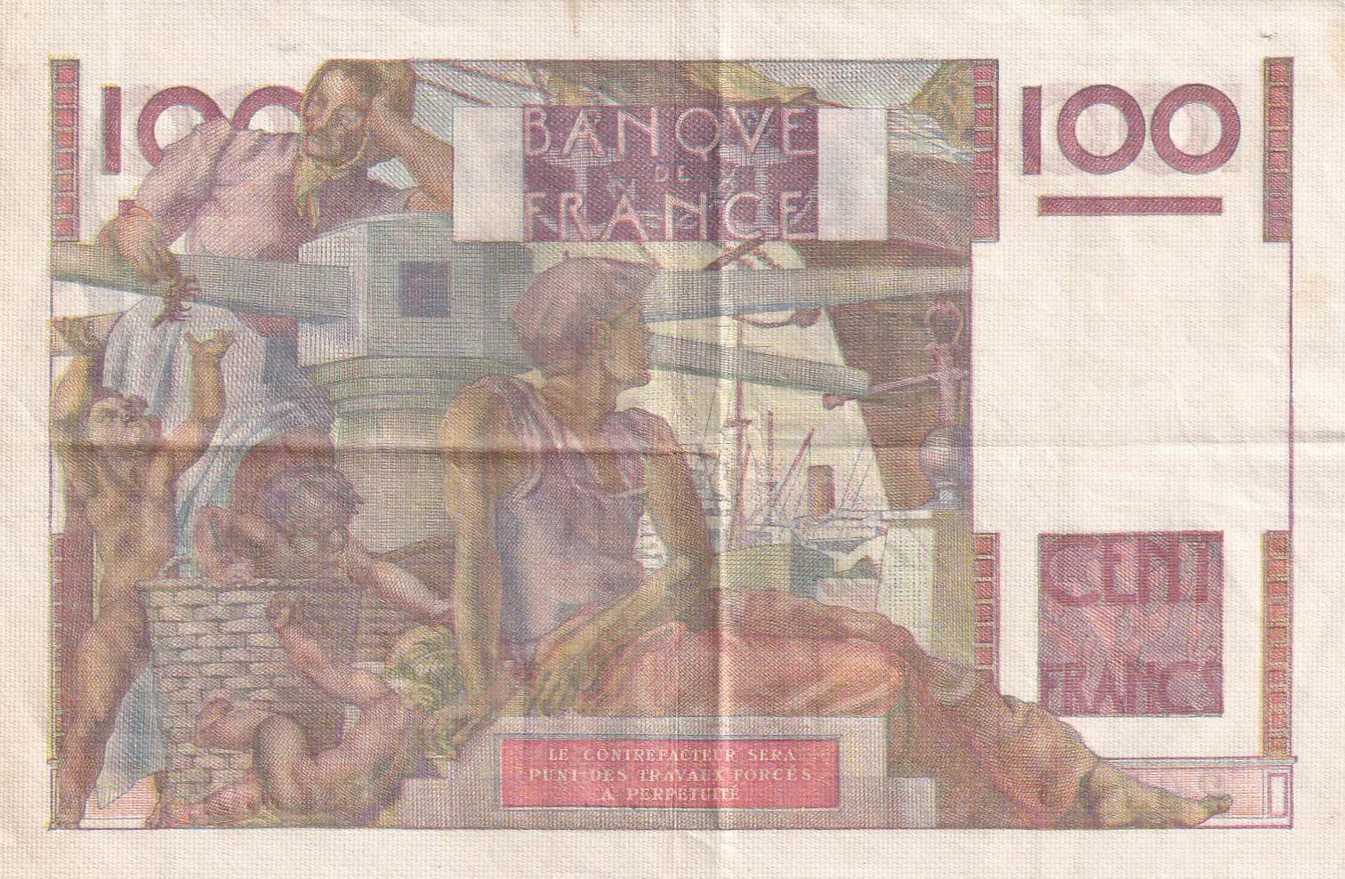Home > > France 100 Francs Farmer - 04-06-1953 - Serial J.539 - XF
