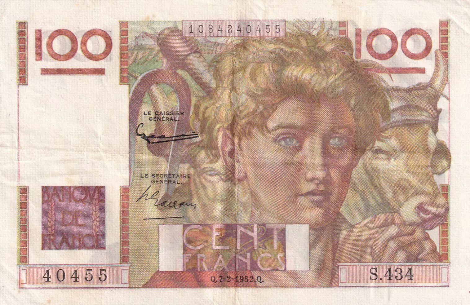 Home > > France 100 Francs Farmer - 07-02-1952 - Serial S.434 - VF+