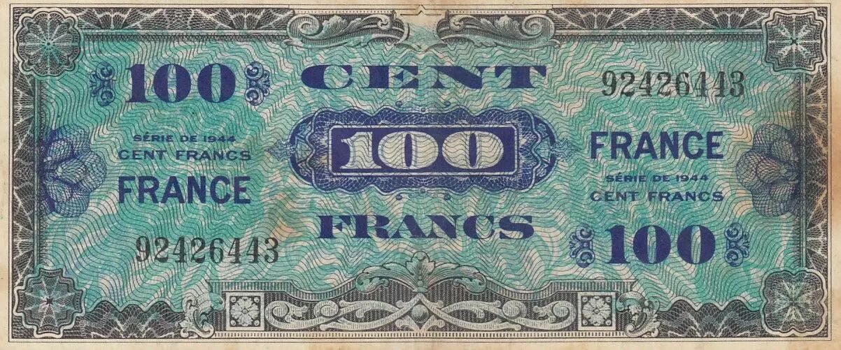 Billet France 100 Francs - Impr. américaine (drapeau) - 1944 - Sans série - Num 92426443