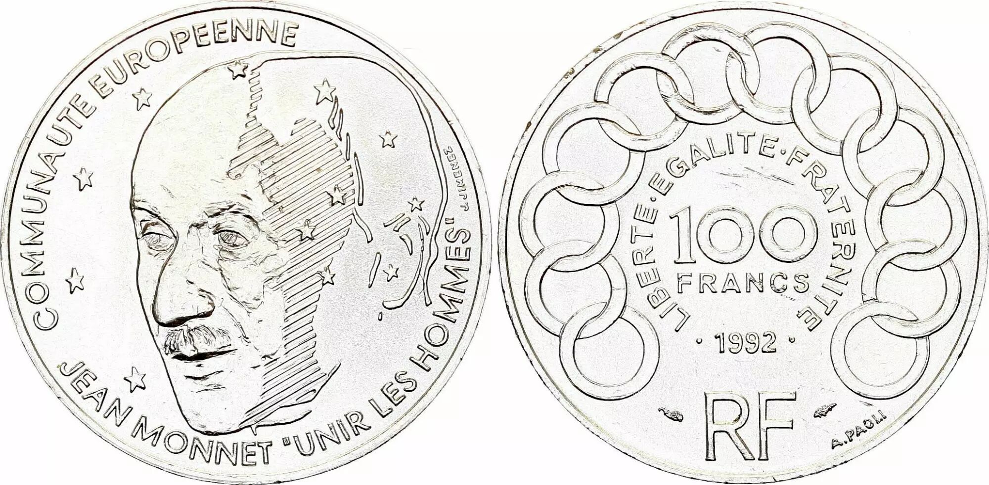 Coin France 100 Francs Jean Monnet - 1992 Silver