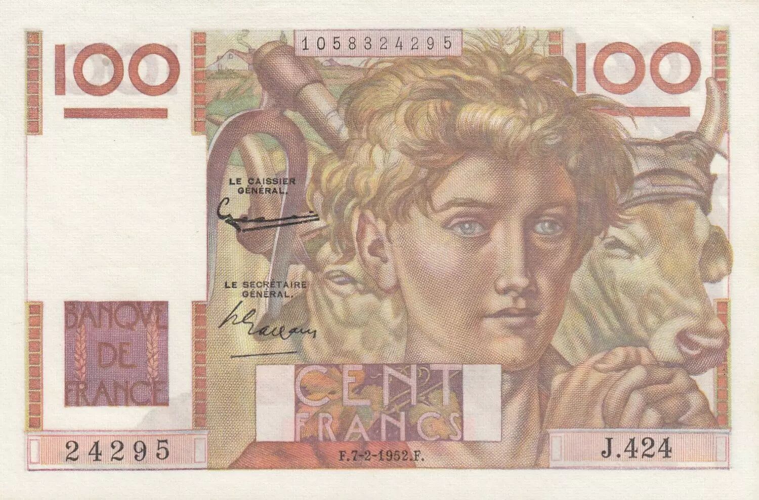 Billet France 100 Francs - Jeune Paysan - 02-10-1952 - Série Q.489