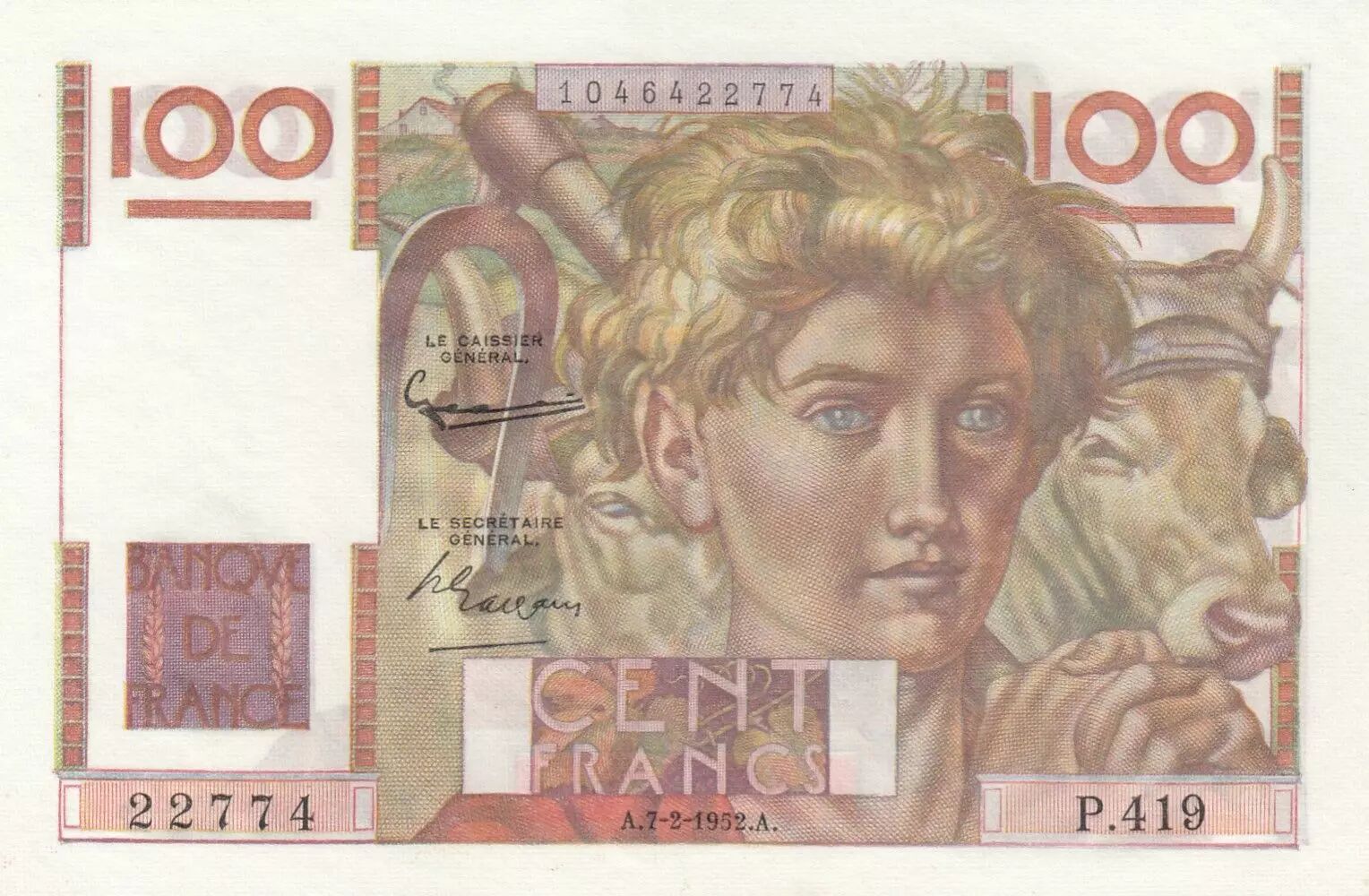 Billet France 100 Francs - Jeune Paysan - 07-02-1952 - Série P.419